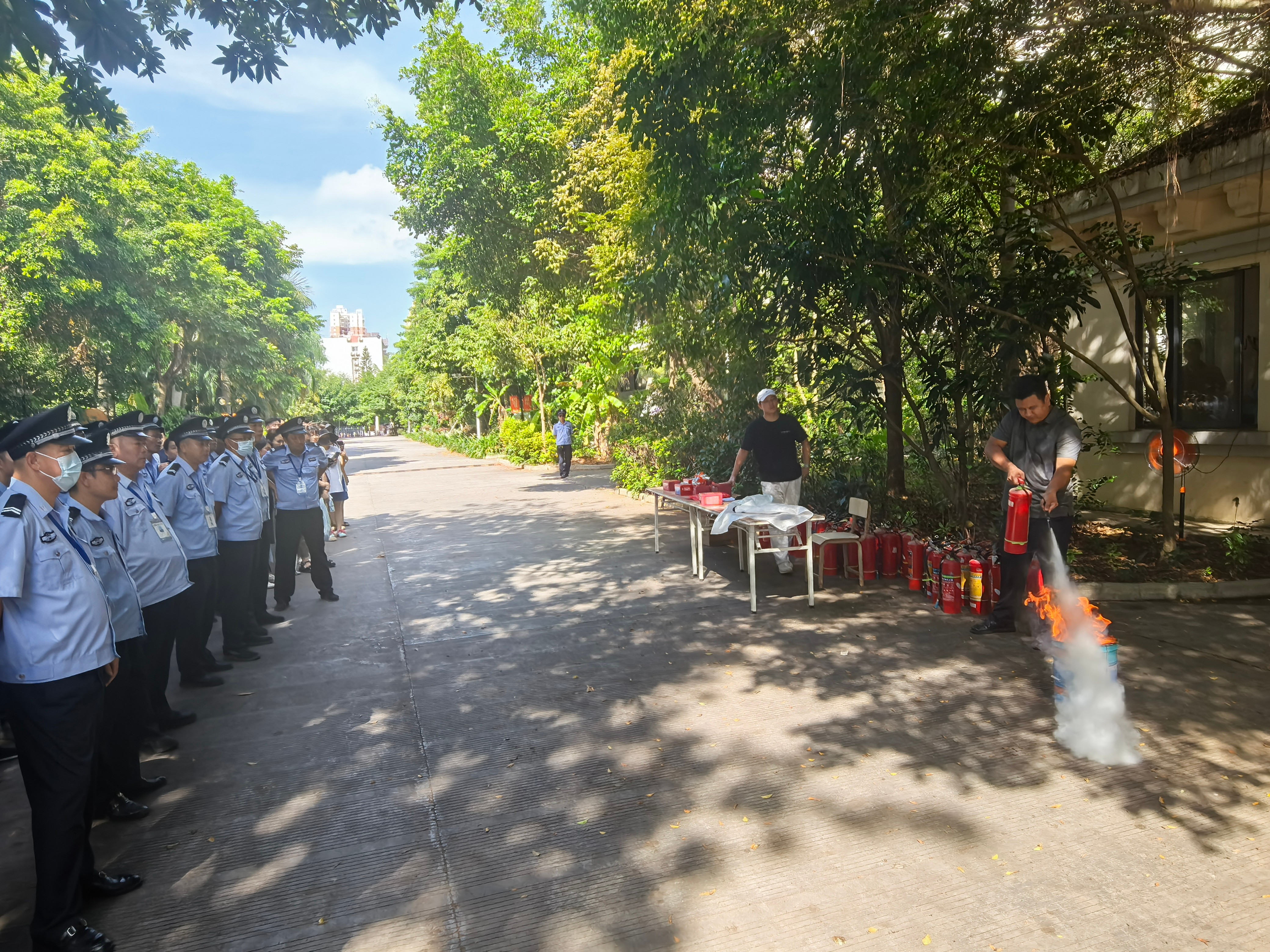 参训人员亲身体验了灭火器、灭火毯、高压水枪的正确使用方法。通过模拟火场环境,大家不仅感受到了火灾现场的紧迫与危险,更在实战中掌握了有效的应急处置技能,实现了“会使用灭火器、会急救、会疏散逃生”的既定目标。