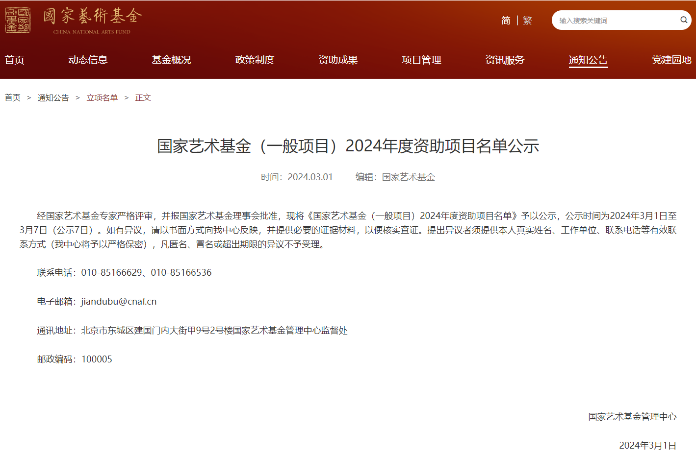 3月1日,国家艺术基金管理中心公布了《国家艺术基金(一般项目)2024年度资助项目名单》,标志着我校在艺术创作与文化传承方面取得了又一次显著成绩。该项目的成功获批,是对我校师生在艺术领域不懈努力和创新实践的充分肯定。
