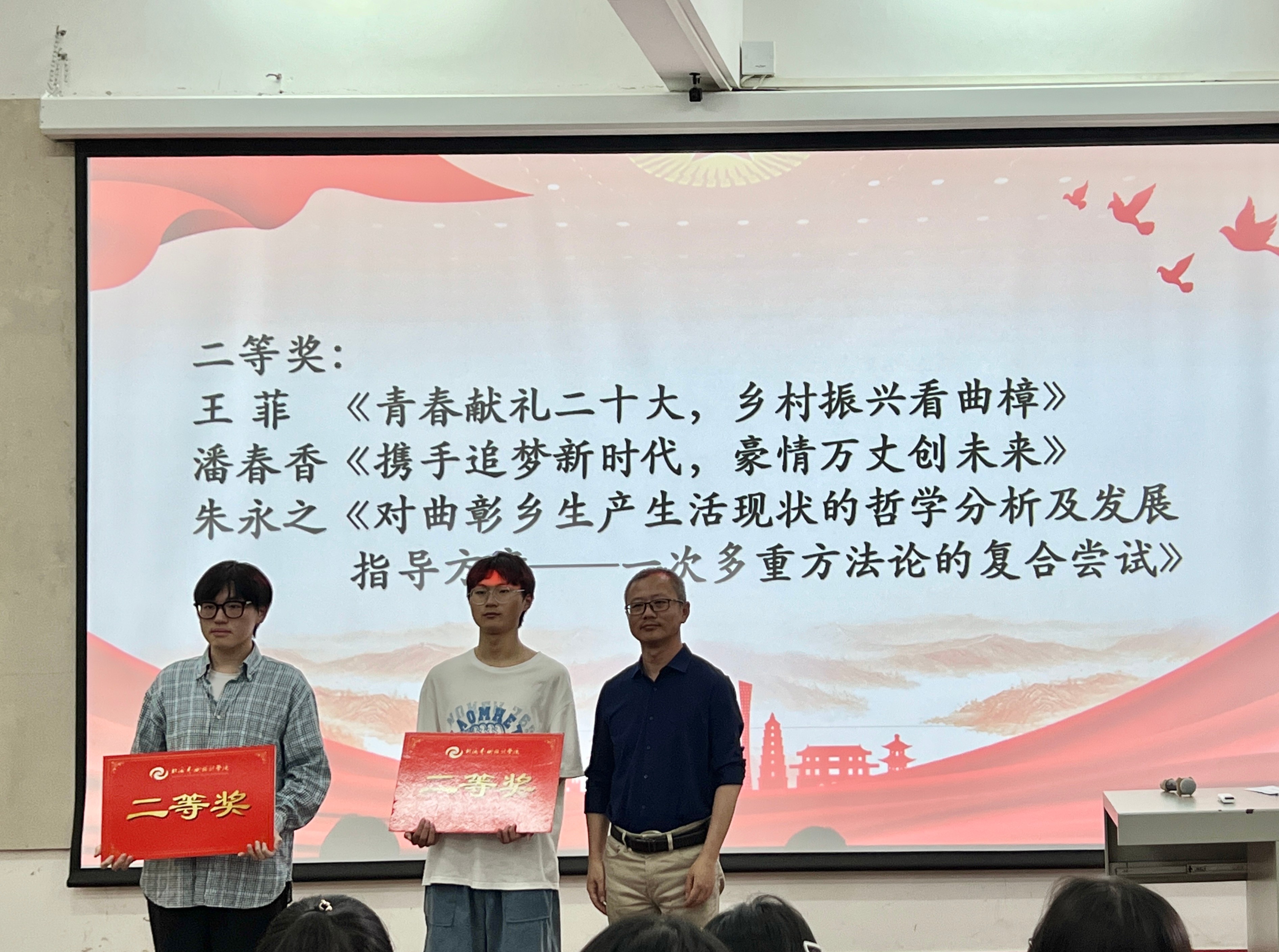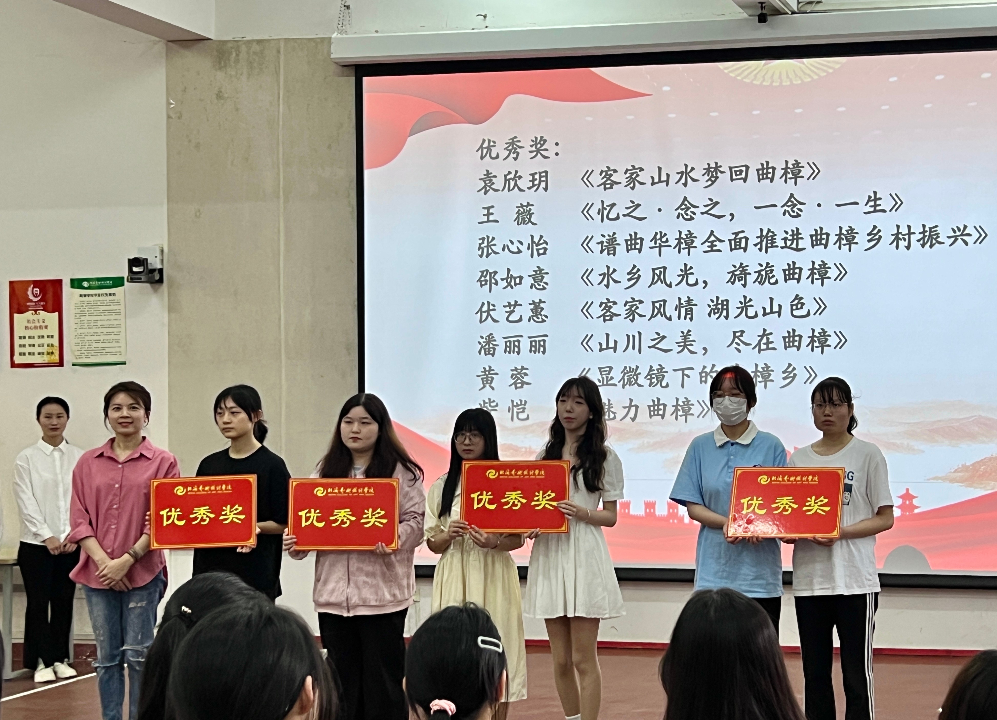 最后,学院领导与曲樟乡政府代表为获奖同学颁发一、二、三等奖以及优秀奖,并与获奖学生合照。