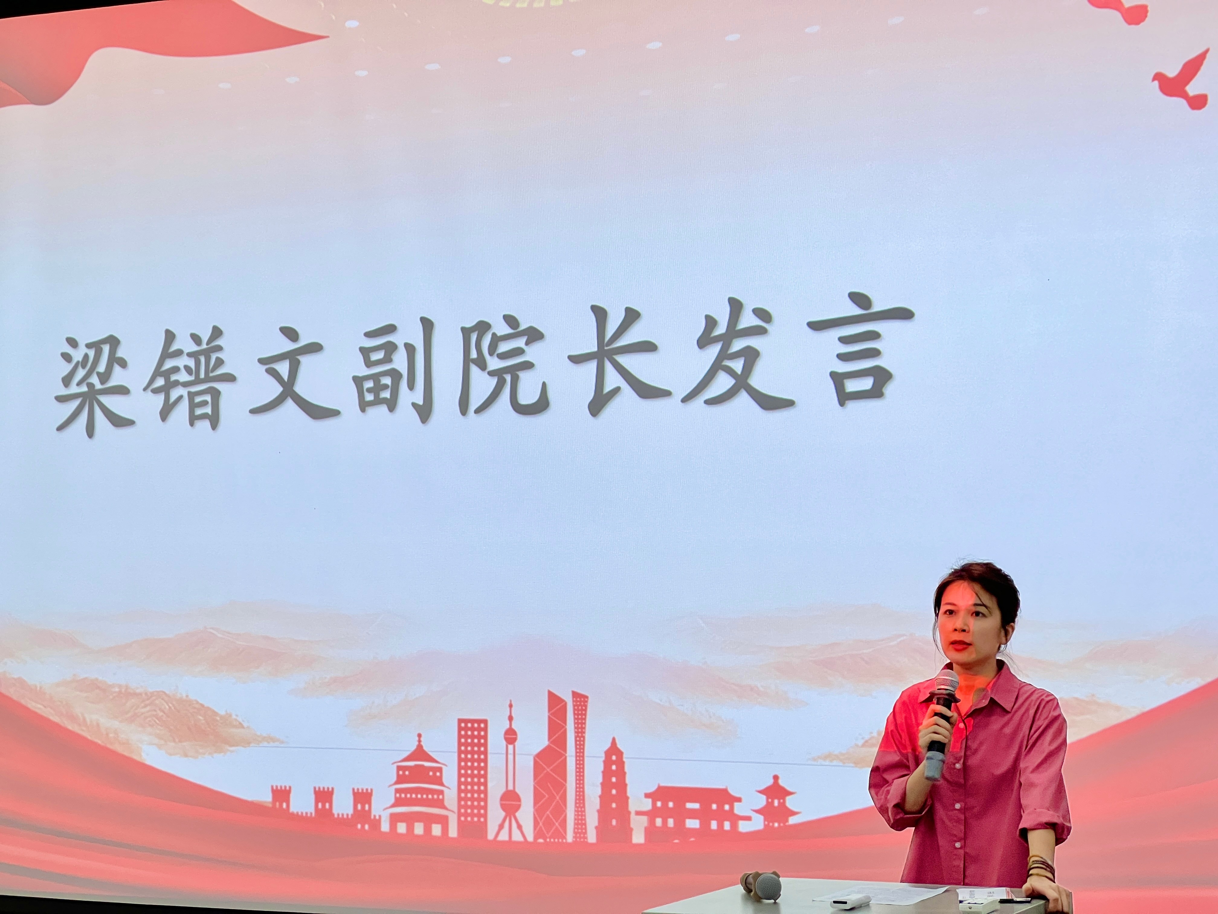 颁奖典礼开始前,梁镨文副院长进行发言,她指出在产学研活动当天,我院师生兵分两路,艺教、学前、舞蹈专业的代表教师与学生开展乡村文艺表演、助教活动;汉语言文学、哲学的代表教师与学生深入当地乡村振兴特色果园示范基地、曲樟乡水库区、爱国将领陈铭枢故居开展专业调研。返校后,人文教育学院结合专业特色举办了“青春践行二十大,砥砺报国实践行”北艺青年助力曲樟振兴宣传作品征集大赛,我校从调研报告、宣传视频、新媒体推文三部分进行作品征集,在这次活动中,汉语言文学和哲学的学生表现出高度的参与热情,将课堂所学和社会实践相结合,充分展现自己的专业素养。她表示,未来将有更多的曲樟乡实践活动,希望学生能再接再厉,不断探索创新,在社会实践中实现自身价值。