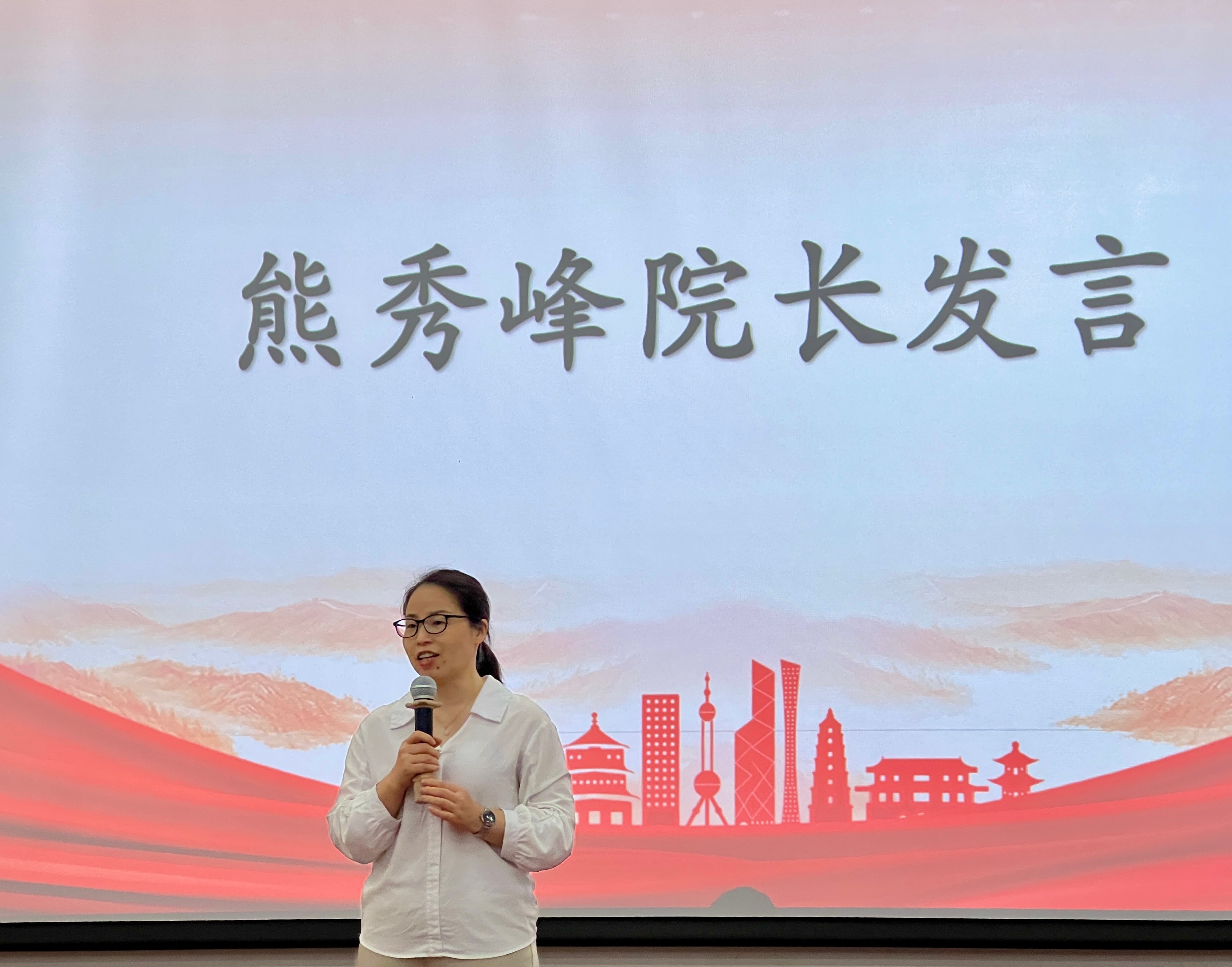 随后,熊秀峰院长致辞,她为人文教育学院学生不断凸显专业优势成为优秀新时代青年代表而感到骄傲。她表示,高校是为党育人、为国育才的,应将同学们带入到乡村、带入到最需要发展的地方,扎根人民、了解人民,利用专业优势让更多的人去了解这些地方的文化特色,从而实现乡村振兴。