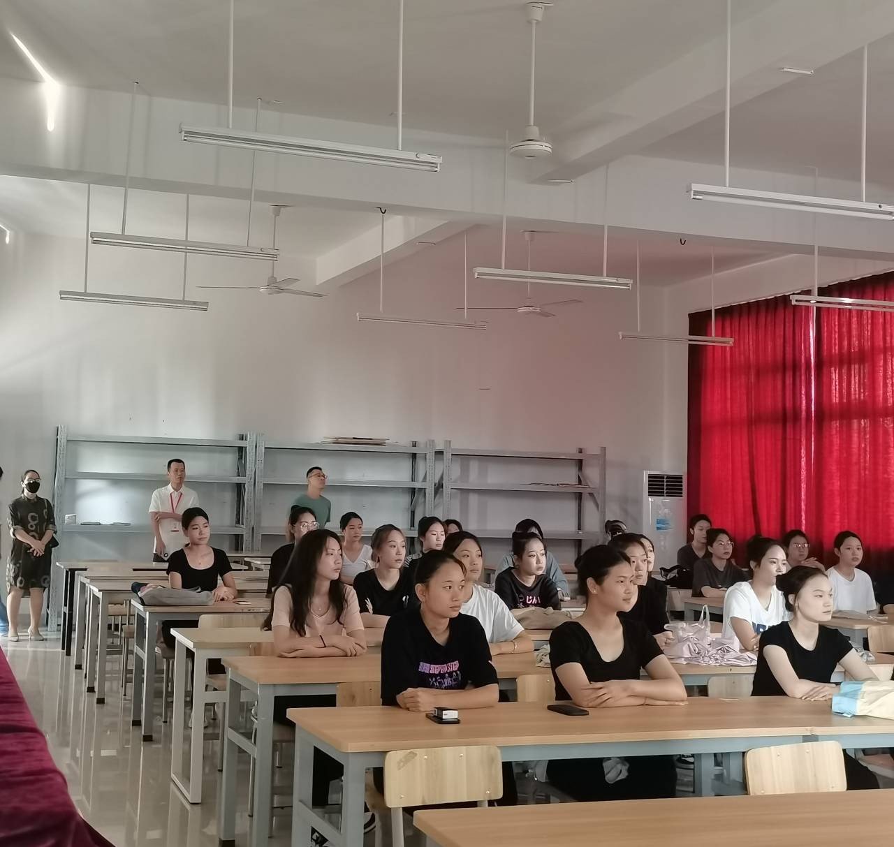 党总支书记、院长熊秀峰对学院教师和学生在新学期表现出来的良好精神面貌表示充分肯定。熊院长要求学院教学部门进一步加强教育教学规范化、标准化建设和管理,加大教育教学督导巡查力度,维护课堂教学秩序,规范课堂教学管理,提高教育教学设施设备保障水平,及时解决教学过程中遇到的问题,为学院的高质量发展打下坚实基础。(张碧蓉 /摄)