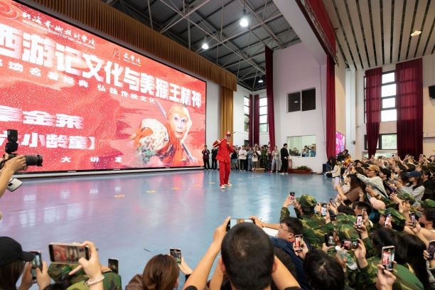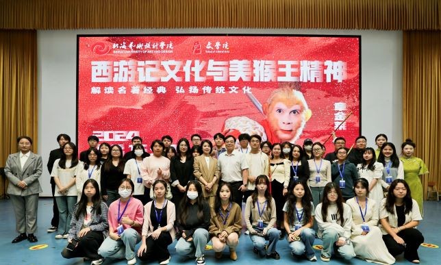 自新生入学后,我校都会向新生发放的全册四大名著,《西游记》也就成为了北艺学子的必读书目。在一年级的通识课阅读与写作课程中,首篇选文就是出自《西游记》的《美猴王拜师学艺》,寓意着每一位北艺新生如同孙悟空一般,怀揣着对知识的渴望和对未知世界的探索,踏入学术与艺术的殿堂,开始自己的“取经”之旅。这不仅是对经典的致敬,也是北艺人对中国传统文化的坚守与传承。此次讲座更是将齐天大圣孙悟空的形象烙印在每一位现场观众的心中。章金莱老师表示,“每一个人,尤其是年轻人,应更多地去关注我们中国优秀的传统文化,从孙悟空身上汲取一种猴王精神,只有苦练七十二变,才能笑迎八十一难!”通过此次讲座,北艺师生不仅重温了《西游记》的经典故事,更深刻理解了孙悟空精神的现实意义。同学们纷纷表示,将带着从讲座中获得的新视角与新见解重读《西游记》,进一步体会其中所蕴含的文化内涵和精神力量。