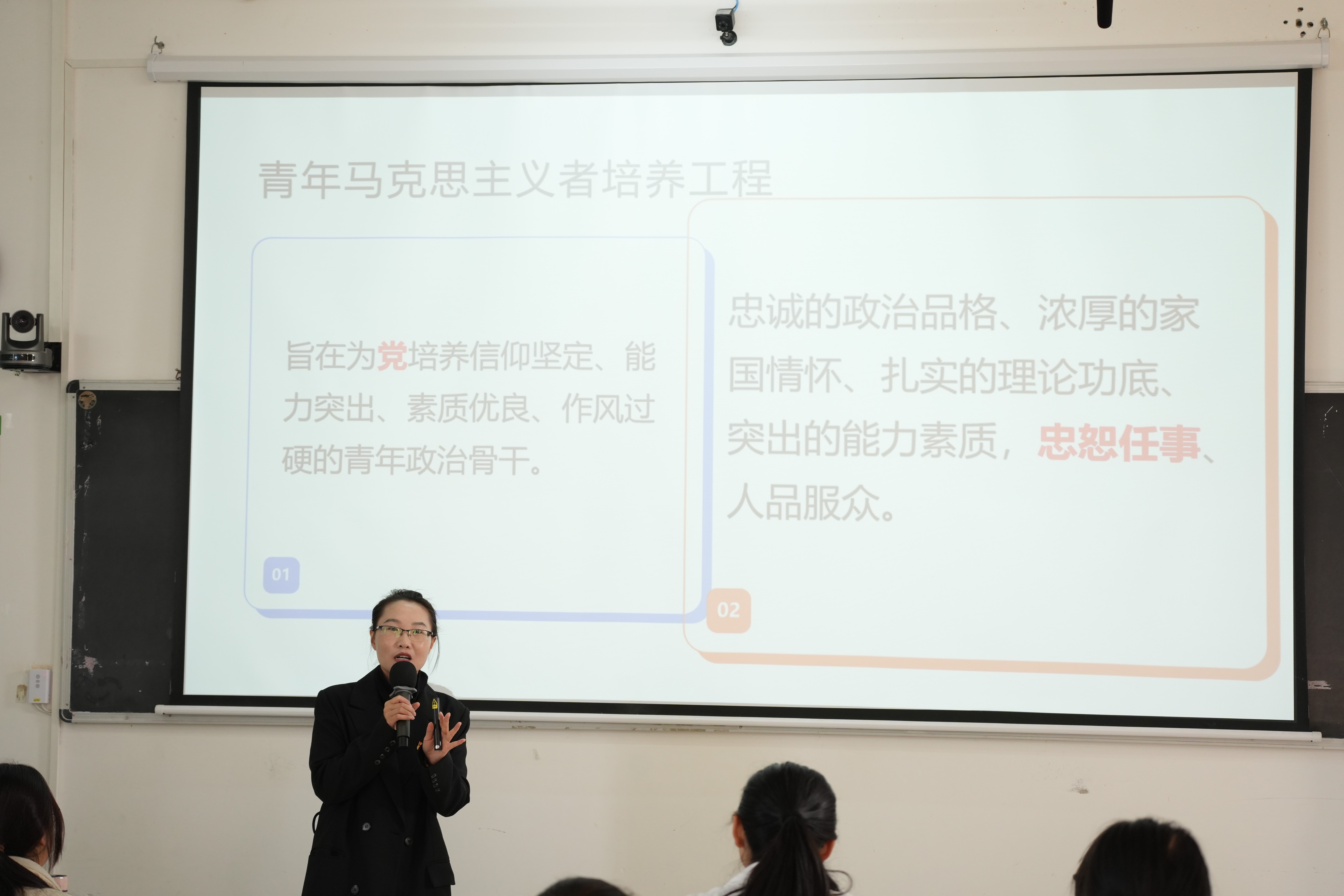 教育学院副院长蒙剑英围绕“知己、任事”开展了授课。她强调践行马克思主义者不仅要有理论,更应有实践。在实践中练就过硬本领,践行好“忠恕任事”,要具有坦荡胸怀的品,成为具有责任感、使命感、团队协作能力突出、作风过硬的青年政治骨干。