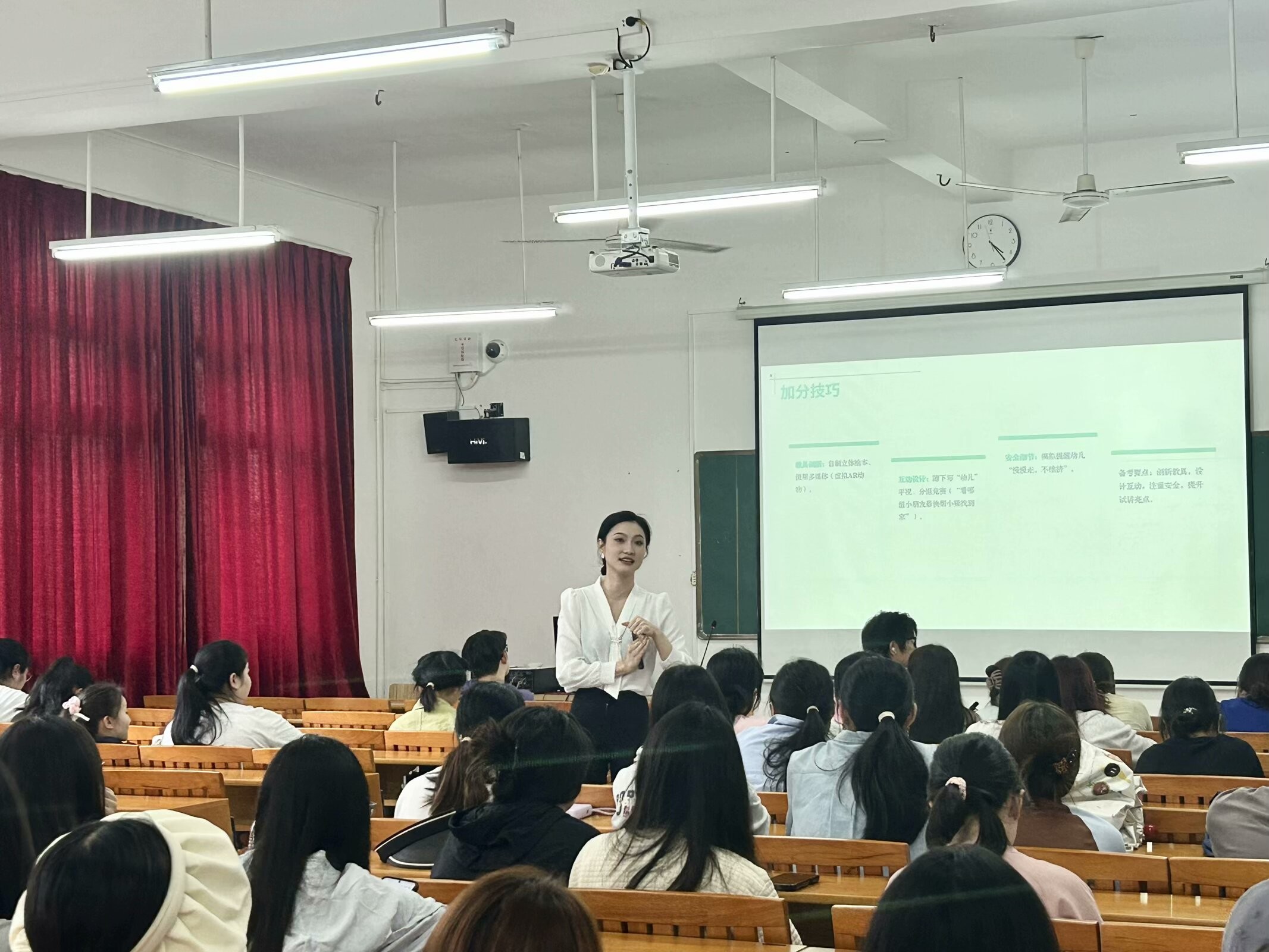 在学院“厚基础、强实践、重创新”的人才培养体系下,教育学院始终致力于为学生搭建成长阶梯。此次活动是学院对专业发展的精准赋能,从教师资格证的实战指导再到考研备考的全程护航,希望学生能以扎实的专业功底顺利通过教资考试,成为未来幼教事业的主力军,也能以敢于探索的学术勇气叩开研究生之门,成长为学前教育领域的创新研究者。(董秋伶/摄)