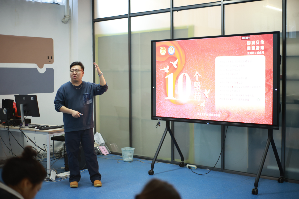 第七讲,马有泽老师以“时代的底线,民族的护盾”为主题开展国家安全教育课。课程深入阐明了国家安全教育的重要意义,并巧妙地以非遗项目为切入点,聚焦以文化自信,为学员梳理出一条将传统文化与创新创业相融合的发展新路径,有效拓宽了大家的创新视野与战略思维。