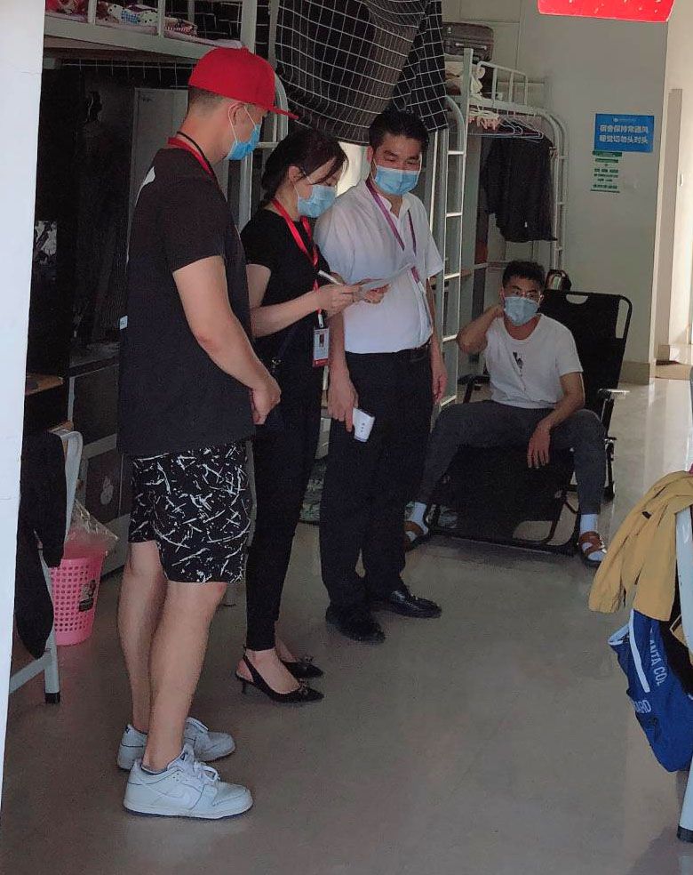 根据教育厅“高校组织复学的通知”要求,我院及时通知学生返校。为做好校园在疫情防控工作落深、落细、落实,5月24日下午4:00学院李水亮副院长一行深入学生宿舍西校区女生2栋男生7栋、东校区女生14栋、男生6栋,对学生宿舍卫生消毒,人员防护等防疫措施进行了检查走访。
