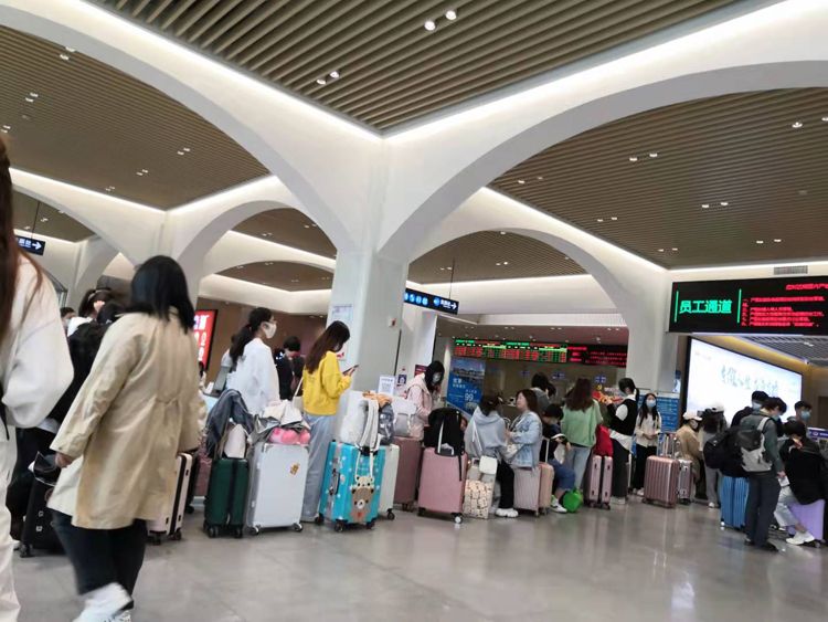 (学生在码头等待安检)