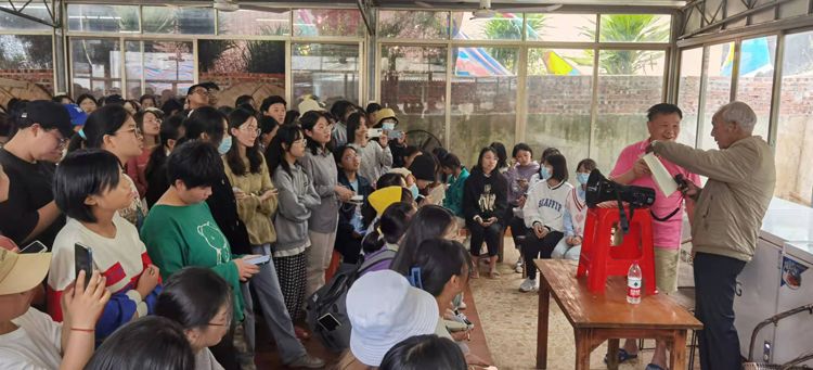 为使艺教专业音乐方向的同学们深入了解涠洲岛的民歌文化,学院邀请了一位九十四岁的退休老教师为同学们讲述了关于涠洲岛的民歌特色,涠洲岛民歌是当地无数劳动人民在涠洲岛独特的地理条件、历史背景、民俗文化长期浸润下的智慧结晶,表达了当地人民的生活需求和精神文化需求。民歌语言朴素自然,具有浓厚的地方特色。热情的陈爷爷在即将分别之际还为同学们唱了一首《敖包相会》,让同学们感受到了其他地区不同的民歌艺术。此外,同学们还采访了另一位岛内居民,询问涠洲岛民歌的相关问题。了解到在现代都市文化冲击下,岛上的民歌传承发展式微,面临着严峻的考验。而在今年十一月将会举办三年一度的妈祖文化旅游节,这将是一场精彩纷呈的文化盛宴,那些鲜为人知的当地特色民歌民俗将会再现。
