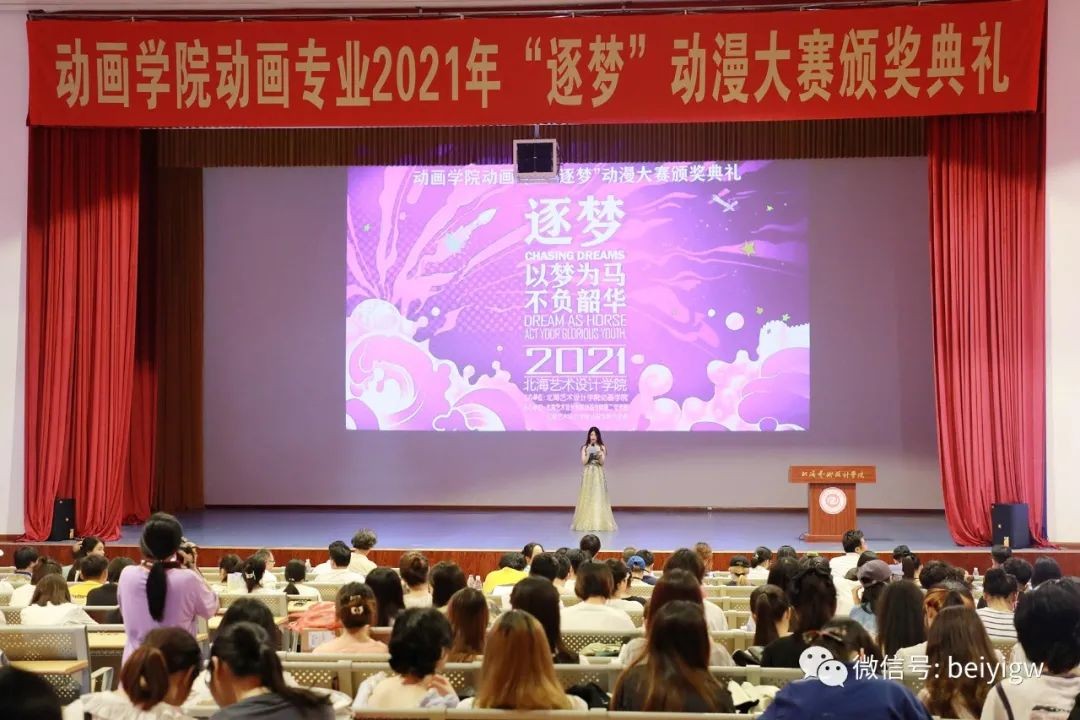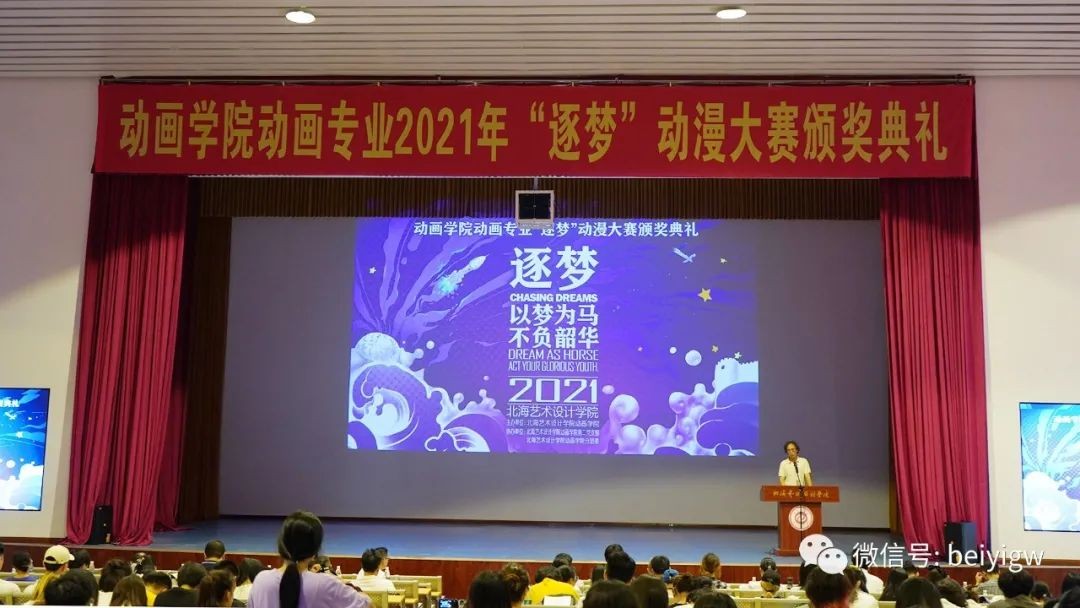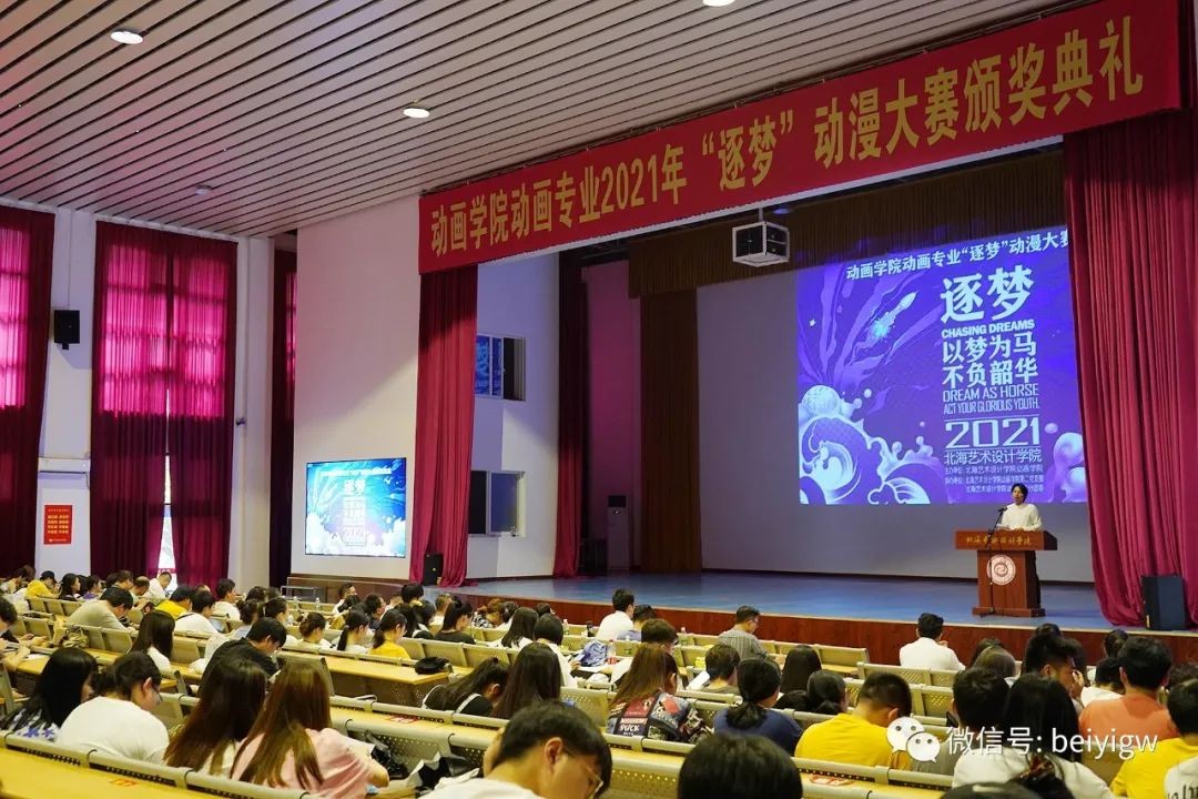 6月29日,北海艺术设计学院动画学院“逐梦”动漫大赛颁奖典礼在我校大礼堂举行。全国骨干漫画编辑、动漫教师、出版社绘本设计师广西科学技术出版社动漫期刊编辑、广西网络动漫大赛评委宫奇、广西阔迩登文化传媒有限公司总经理陈子雄、天象动漫总经理蒋玖林、行政部主任吴佳蔓、天象云豆直播公司总经理赵怀明、北海银河城市科技产业城总监梁张云、北海365总经理刘婷婷、北海市青年创业促进会办公室主任姜青云,我校校长卢新华、副校长陶立阳、美术学院副院长唐海以及动画专业2018级全体学生参加了本次颁奖典礼。
