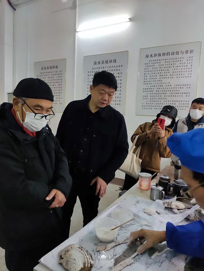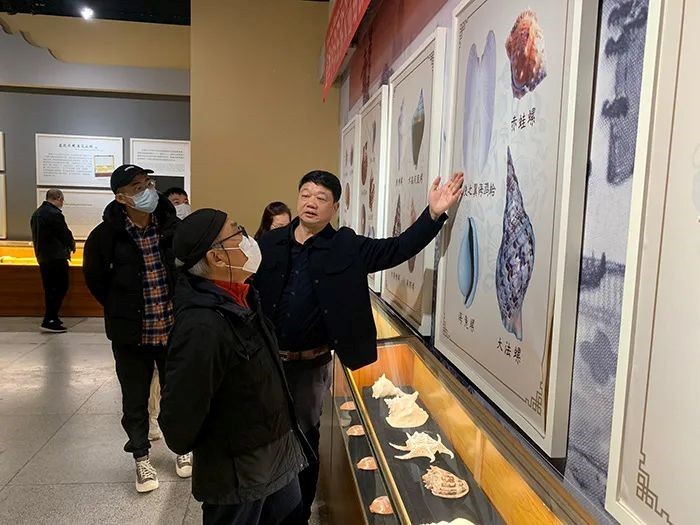 在博物馆参观调研时,王教授认真听取林雄对北海贝雕近十年的发展历程的介绍,王教授对博物馆内的藏品很感兴趣,仔细了解藏品的来历的同时,对藏品保护提出了宝贵意见,对贝雕工艺巧夺天工的自然之美,赞不绝口。
