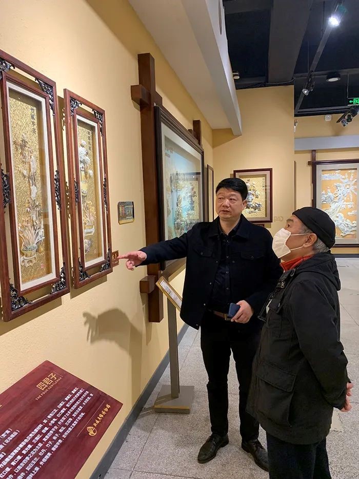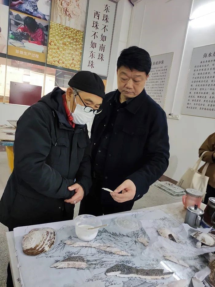 在参观过程中,当王教授得知,北海贝雕经过数年精雕细琢,已经成为代表广西的国礼和区礼,并成为北京人民大会堂、首都国际机场、国家商务部等重大场馆的重点装饰后非常高兴。王教授对当前在疫情冲击下,经济环境恶劣,恒兴珠宝公司仍然能坚守贝雕产业,并坚持不懈地传承和发展贝雕技艺表示肯定和赞赏。