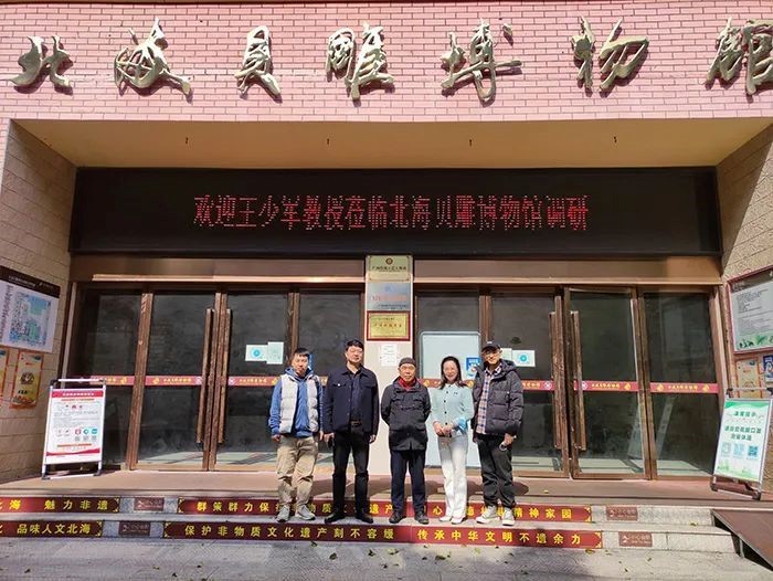 12月12日上午,北海艺术设计学院雕塑系王少军(原中央美术学院教授、博士研究生导师)教授一行4人来到北海贝雕博物馆调研,并就贝雕技艺的保护、传承与发展召开研讨会,北海贝雕博物馆馆长林雄全程陪同。