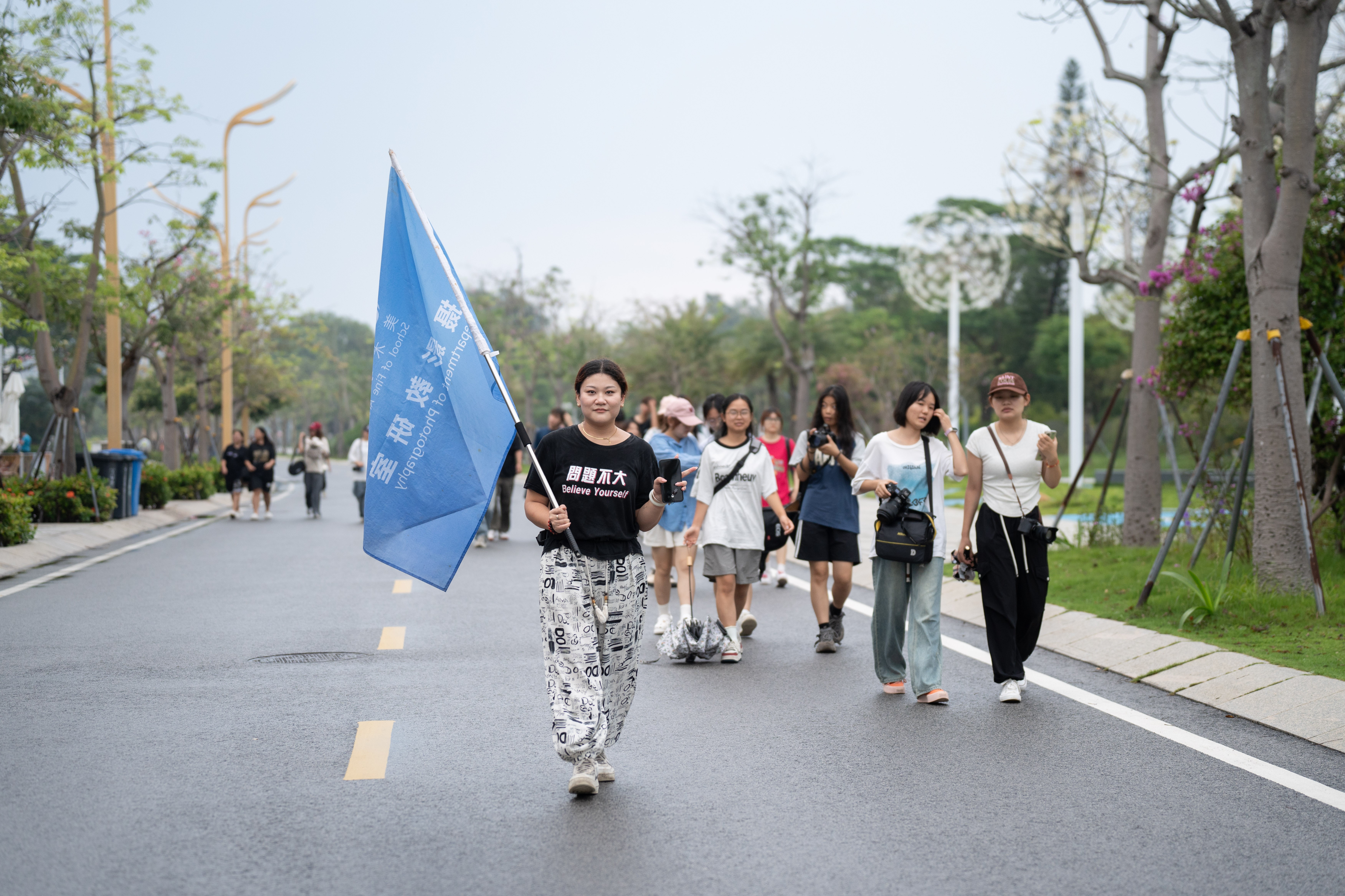 北海艺术设计学院美术学院摄影教研室受邀负责本次活动的拍摄工作。鉴于美术学院摄影专业2022、2023级本学期开设有《动态影像创作基础》《构图学》课程,目前已进入综合实践阶段,为拓宽学生视野,提升学生专业审美能力,更好地做到理论结合实践,给予学生更直观的学习体验,美术学院组织摄影专业师生共计59人(其中教师4人,学生55人)由实训处副主任李异老师带队,于9月21日上午6:30由西校区北门集合出发,前往北海银滩潮雕广场参加此次骑行活动开幕式,并进行拍摄实践与交流学习。
