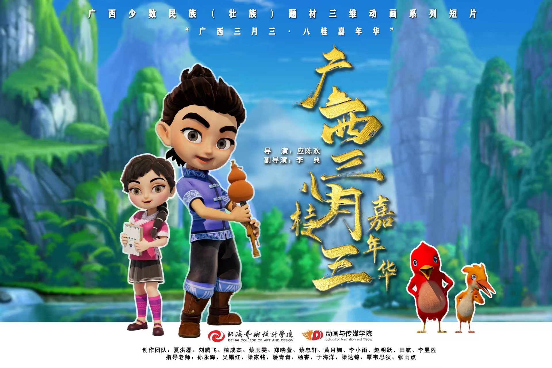 正片将于4月20日全网上线,这部以壮族“三月三”为背景的动画,既是对非遗文化的创新表达,也是学院立足本土、服务文化的生动实践。