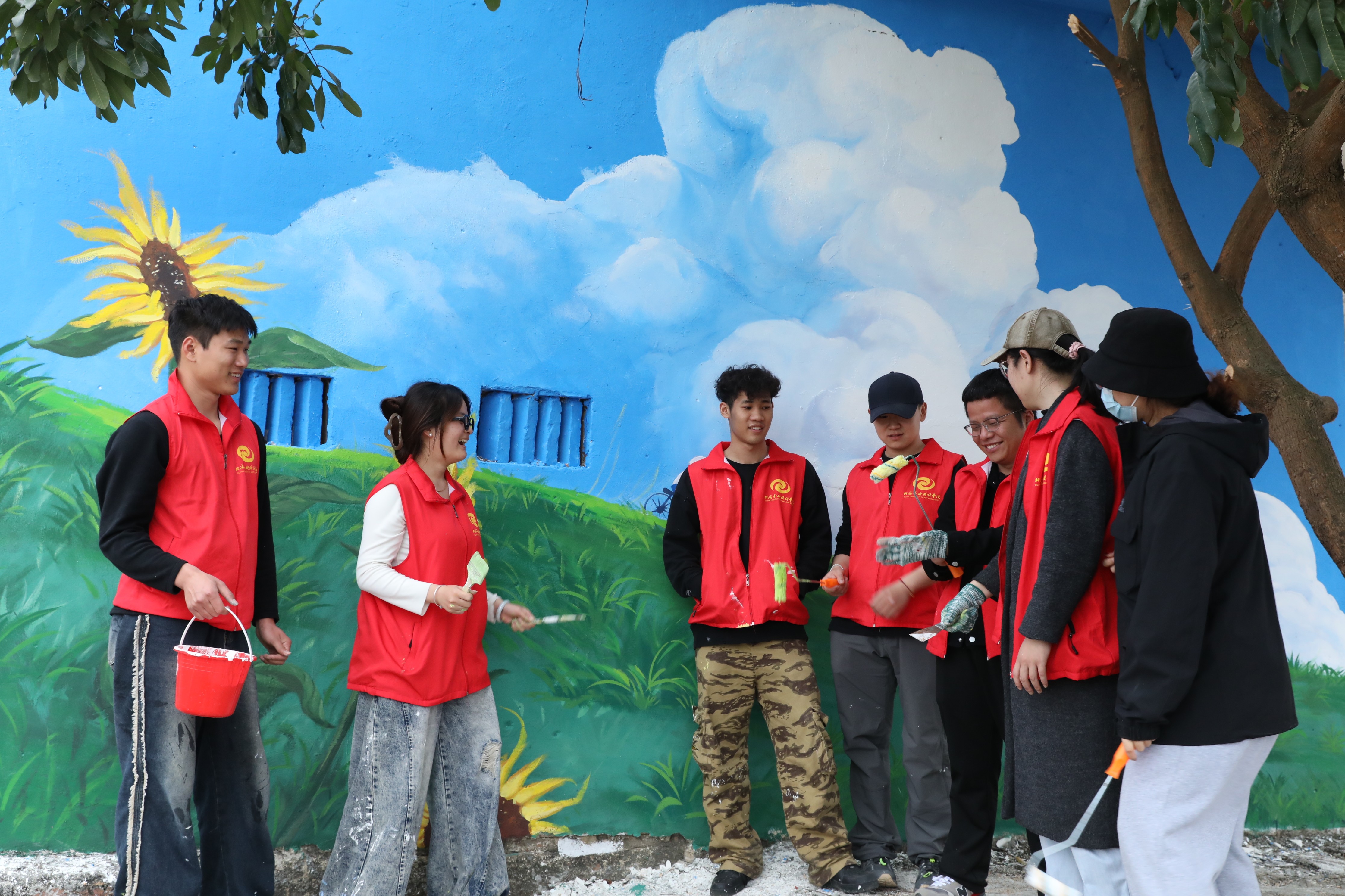 井山村小洱海墙绘师生合影