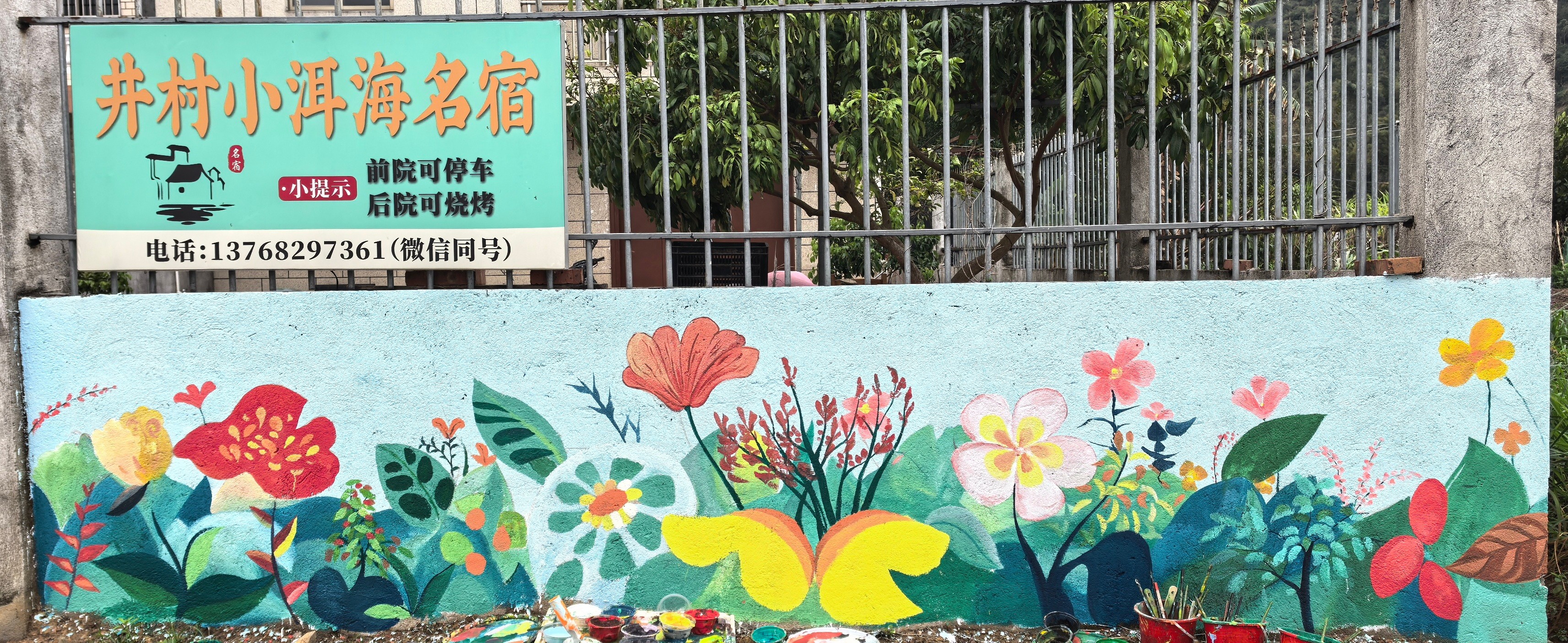 井山村小洱海墙绘初期绘制