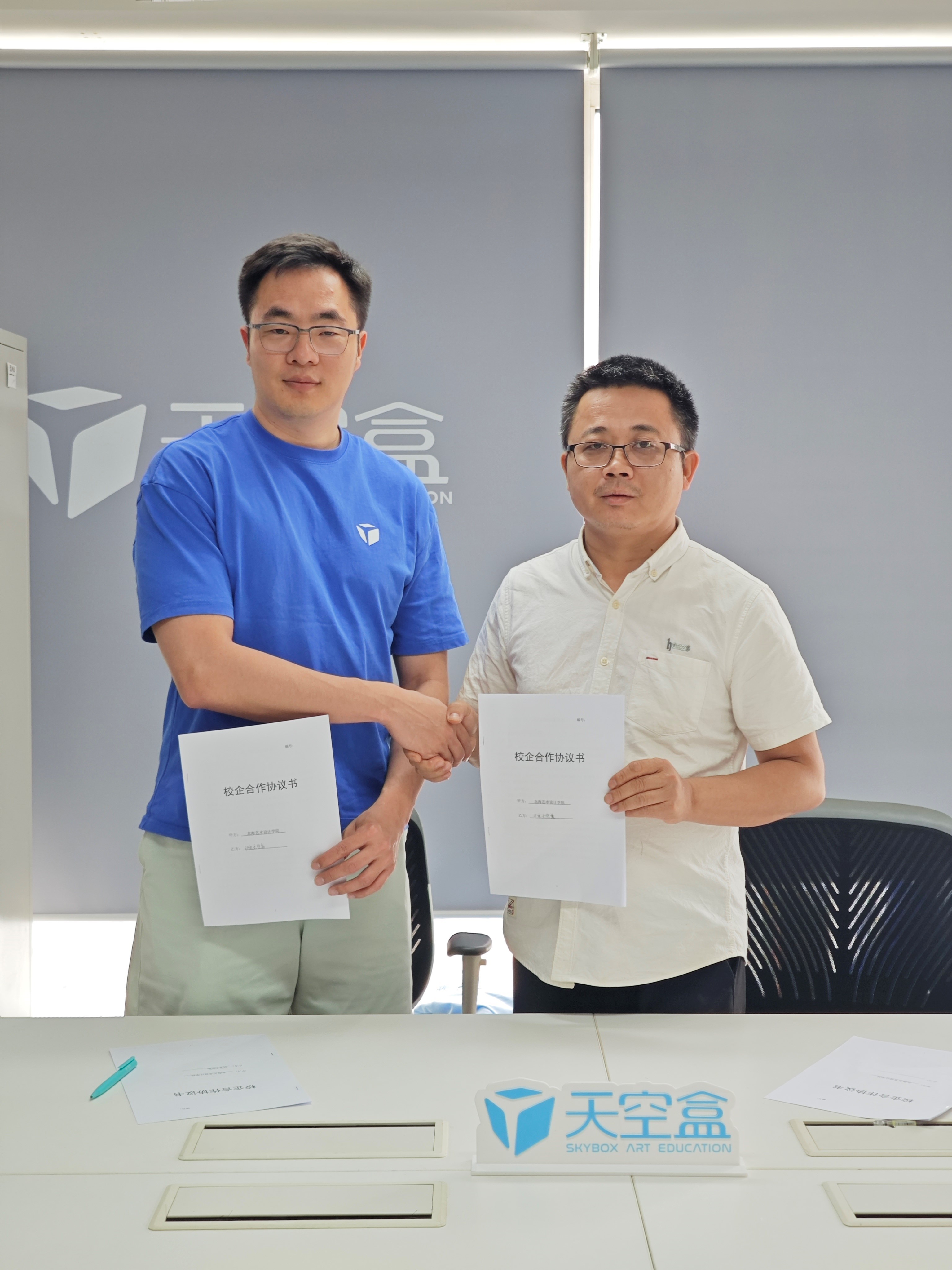 会后在双方的见证下,天空盒负责人郑琦与龚为院长签署了校企合作协议。