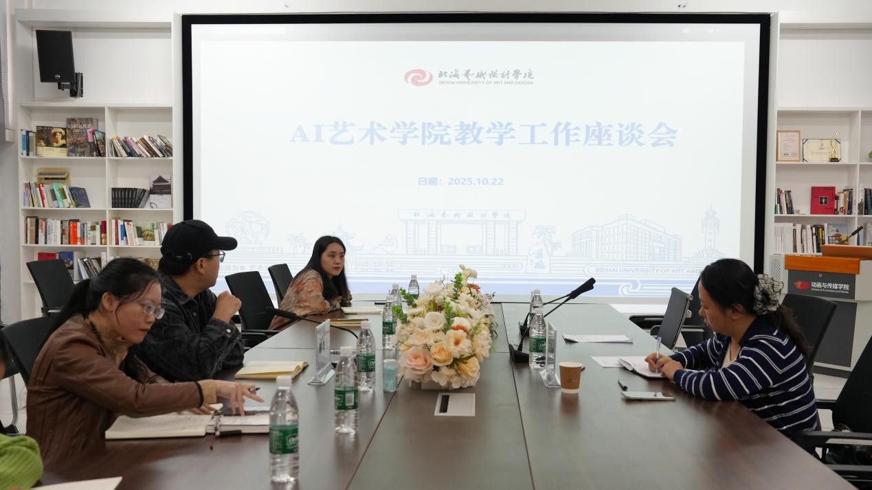 2025年10月22日下午,教务处副处长吕雅婷走进AI艺术学院,与学院教师在综合楼四楼演播厅开展本学期教学工作座谈会。AI艺术学院党支部书记芦庆芳、院长顾伟光、副院长李剑阁以及各部门主任、骨干教师代表参加会议。座谈会围绕“艺术与科技专业课程体系建设与未来发展方向”主题展开深入研讨,并就学生当前的学习现状进行了交流与分析。