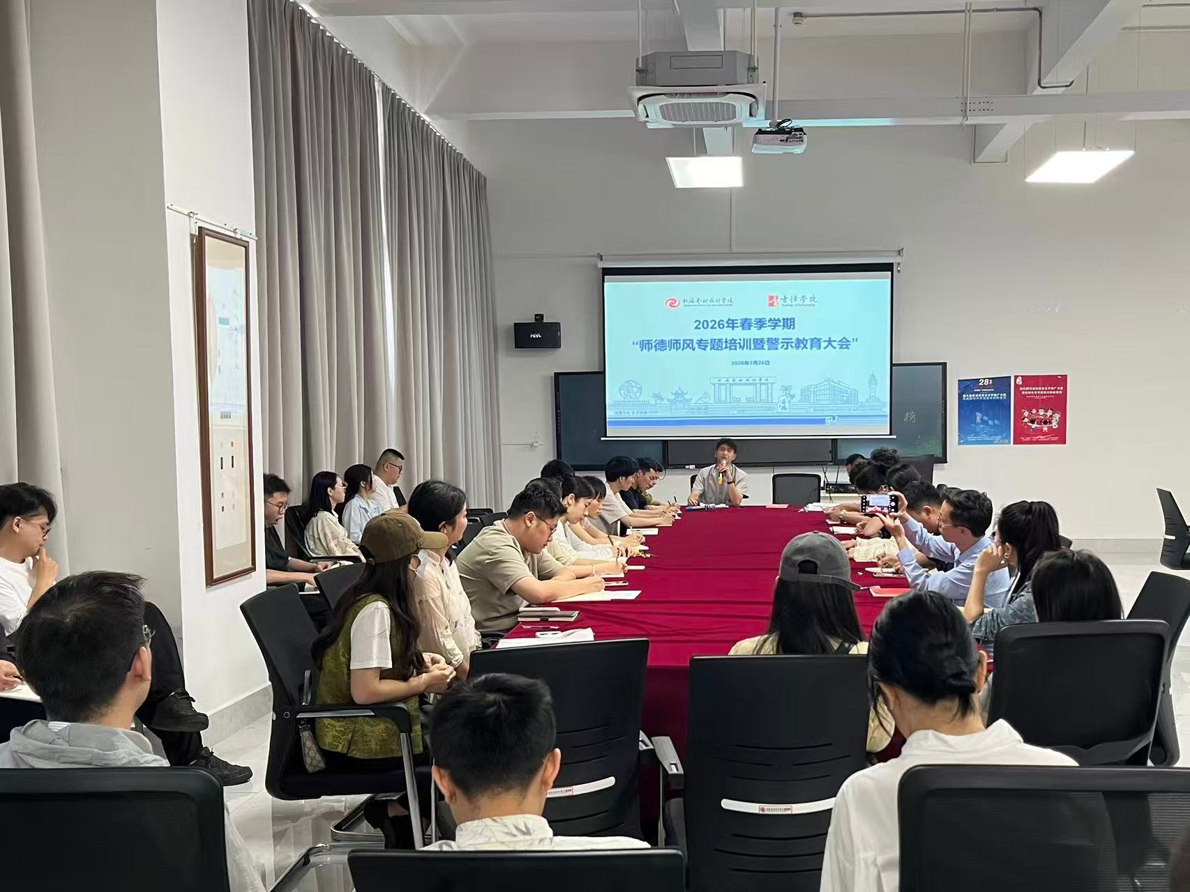 3月26日,书法学院于艺德楼507书法教研室组织开展2026年春季学期师德师风专题培训暨警示教育大会,全体教师参会。