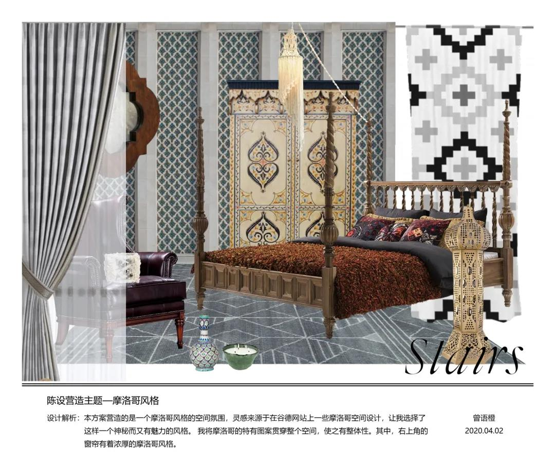环艺1704曾语橙 摩洛哥风格卧室陈设