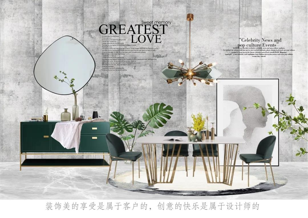 学生通过课程理论知识的学习,明确陈设的概念、风格、流程等知识,了解陈设是关于整体环境、空间美学、生活功能、材质风格、意境体验、个性偏好等多种复杂元素的创造性融合。通过不同方式的课程训练,使学生能够应用陈设元素及方法设计搭配出符合空间环境要求的陈设软装,并基本掌握了一定的自我充实的途径和方向。通过本次课堂与课后的交流,也帮助同学们形成良好的设计思维能力,树立了品牌意识,领悟设计师的工作性质及需要具备的专业素养。