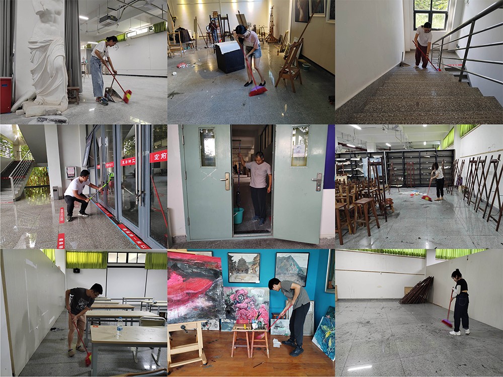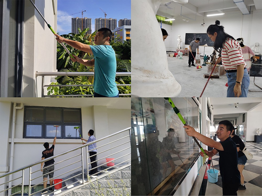 2021年8月23日,美术学院全体教师在龚为副院长亲自带领下,对艺术楼进行了一次彻底的大扫除。经过了一个多月的暑假,又有几次台风天诸多暴雨天,校园里变得一片狼藉。