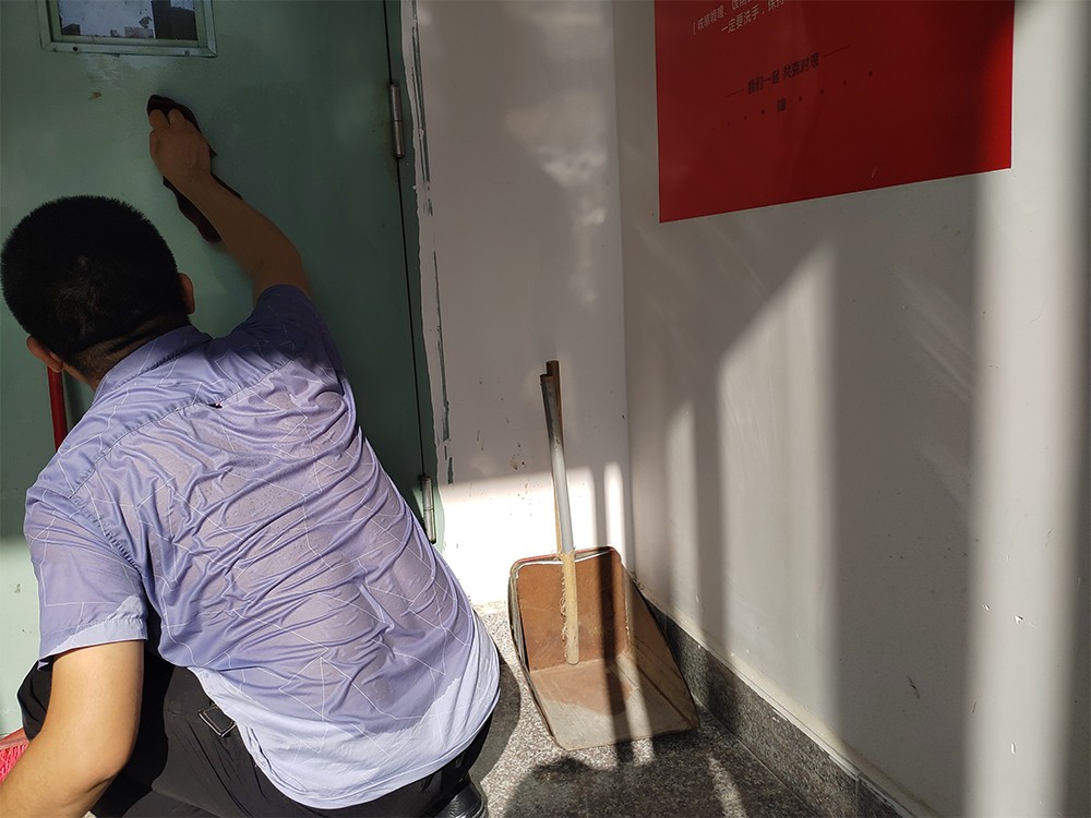 看,老师们把教室、走廊、楼梯间、清洁区、等卫生死角进行了一次彻底的打扫,艺术楼的地被拖得锃光瓦亮,对暑假前留下的废弃物进行了清理,对乱堆乱放的材料进行了搬运。以整洁、卫生、温馨的校园面貌来迎接同学们,让同学们以清新愉悦的感觉开启新的学期、新的开始。