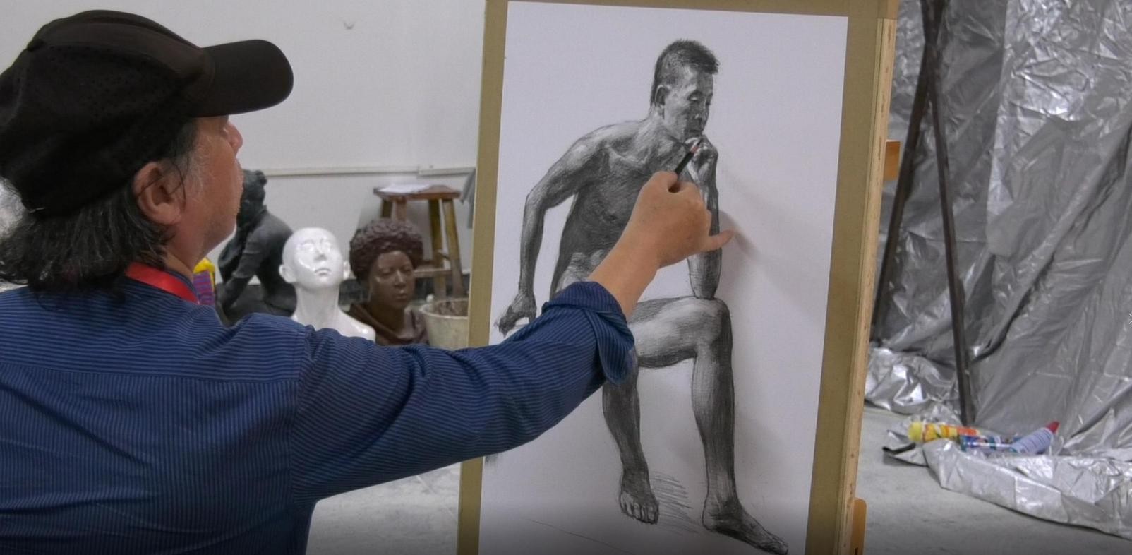 湖南师范大学美术学院曲湘建教授莅临我校美术学院进行人体写生课程示范教学