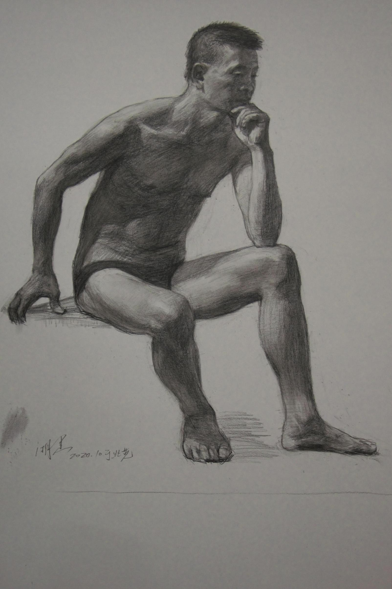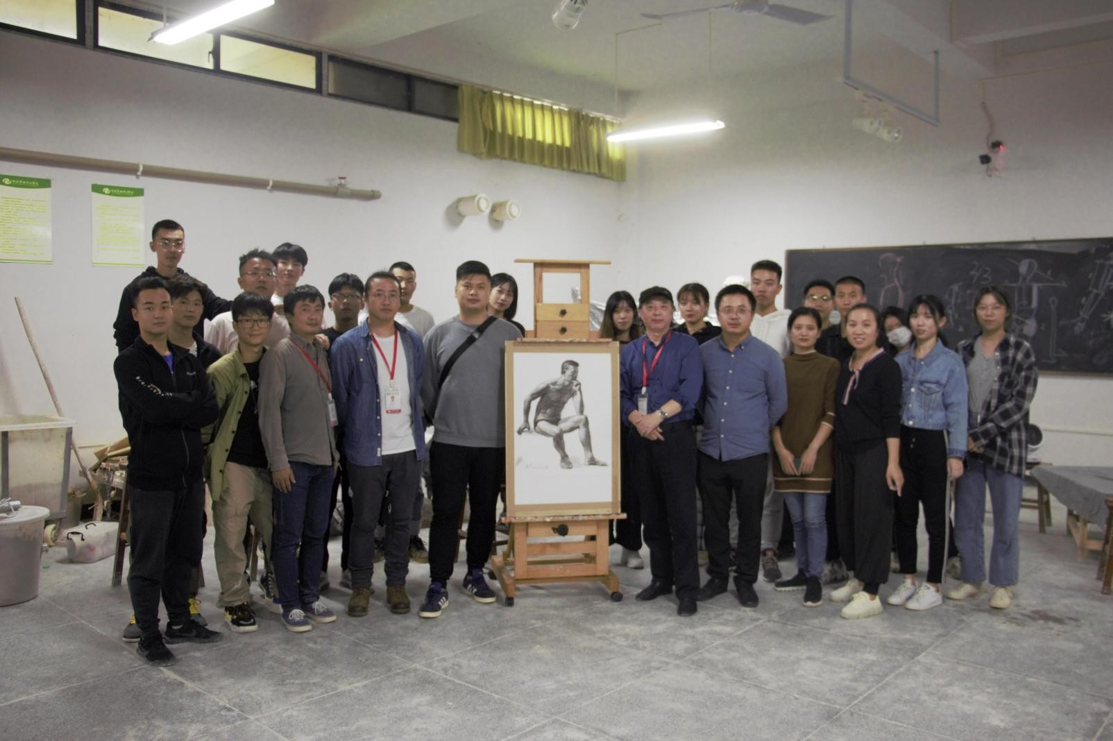 作品完成后,曲教授结合对自己的作品对人体素描的创作细节进行讲解。大家纷纷表示,现场观摩大师作画,亲身感受大师的艺术修养和人格魅力,对自己作画技法方面深受启发,范画结束后,曲教授与大家亲切交流并拍照留念,此次范画活动圆满结束。
