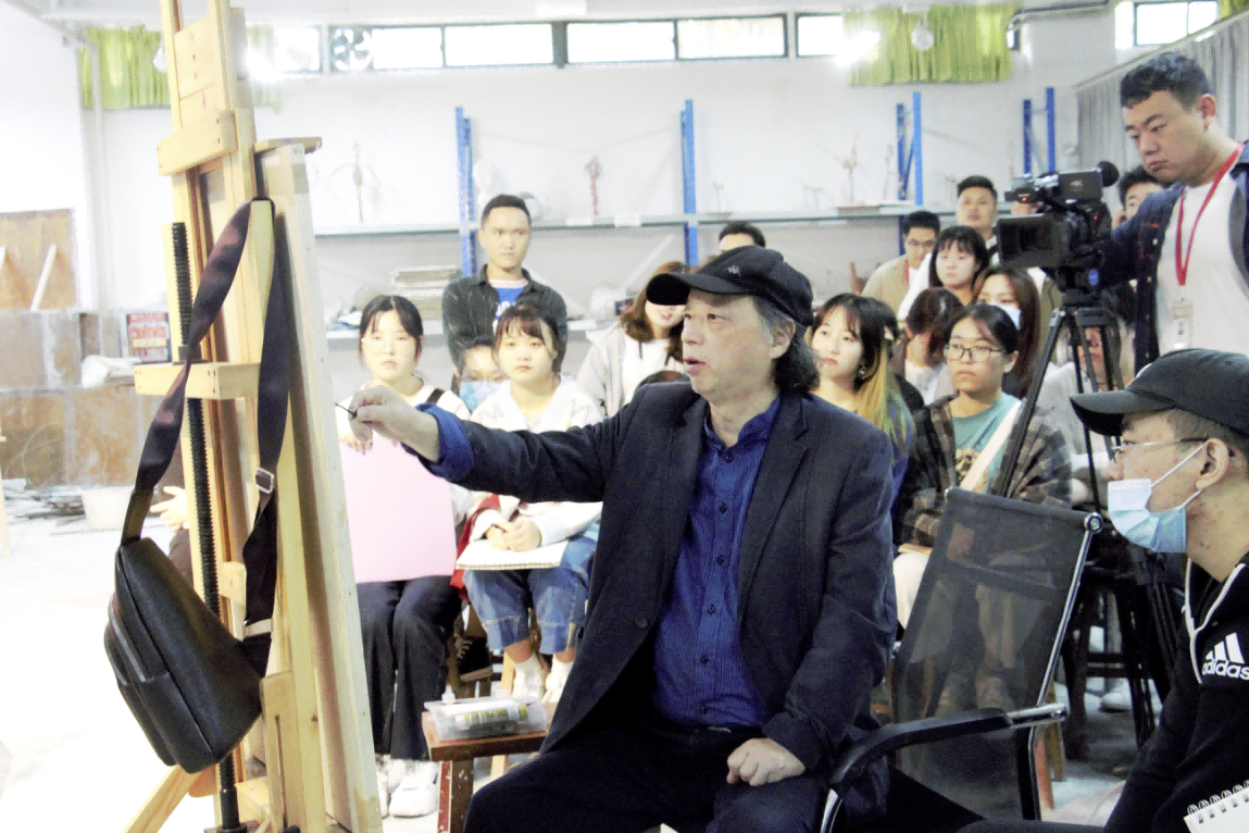 2020年10月22日,曲湘建教授莅临美术学院指导教学,在图书馆负一楼雕塑教室为美术学院同学上了一堂精彩的写生示范课。