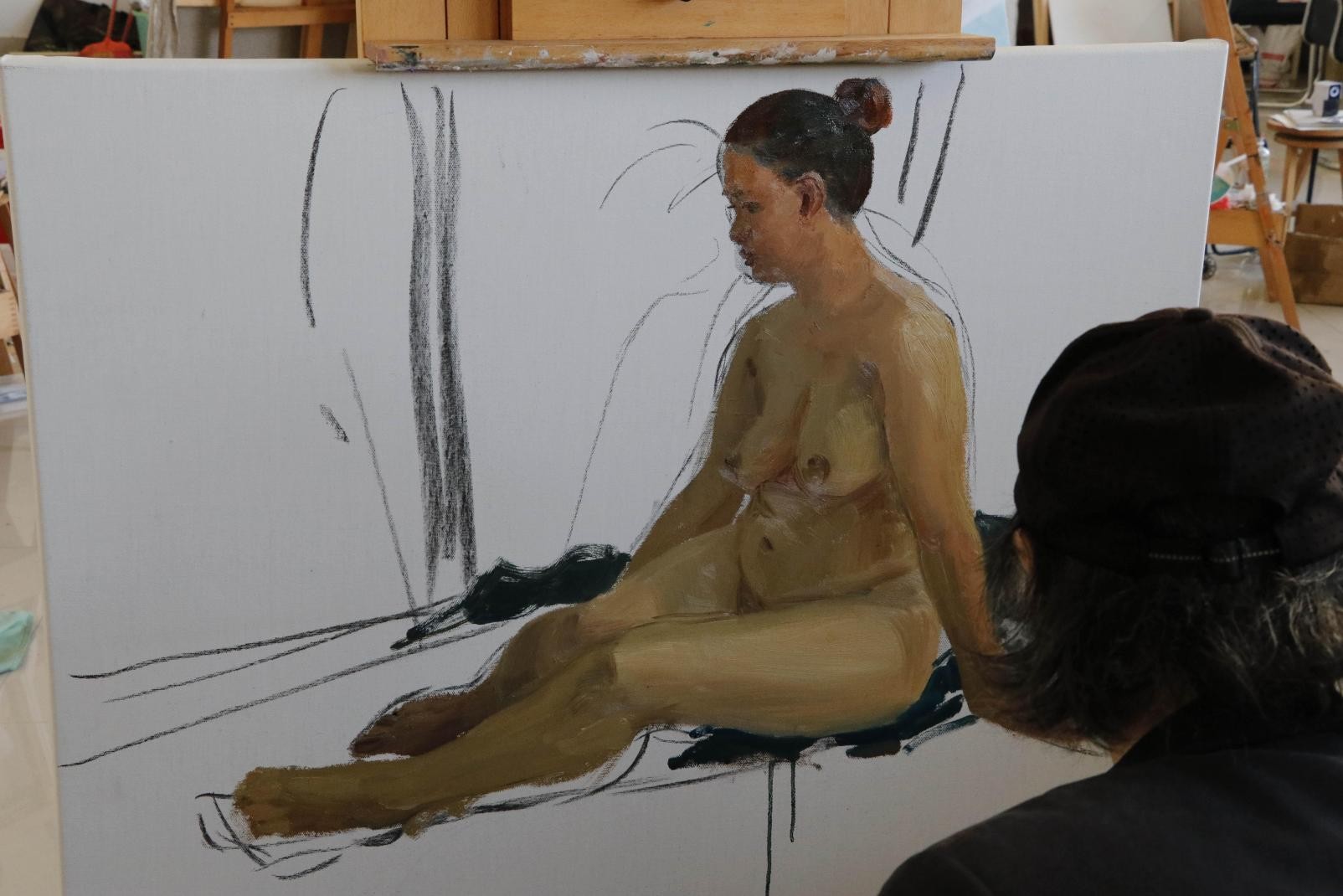 随后几天时间里,曲教授深入课堂,指导18、19级学生色彩人体写生及色彩人物写生,并且又进行了两次色彩人物示范,为更多同学在学习绘画的道路上指明了方向!(陈建江 摄)
