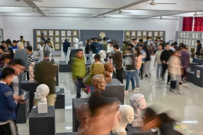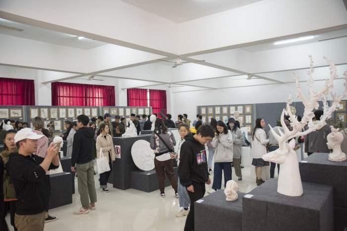 此次展览有老师和学生作品,其中作品除了有雕塑作品 还有一些绘画作品。进入展厅老师和学生的作品令我们惊叹, 在场的师生无不细细品酌每件作品的精妙之处,给我们带来 了一场视觉艺术上的饕餮盛宴。