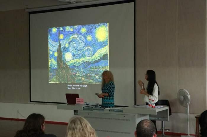 2018年10月19日下午16:40分,美国芬兰迪亚大学丹尼斯教授在伦理楼107开始了第二讲,本次的主题是印象派与后印象派。