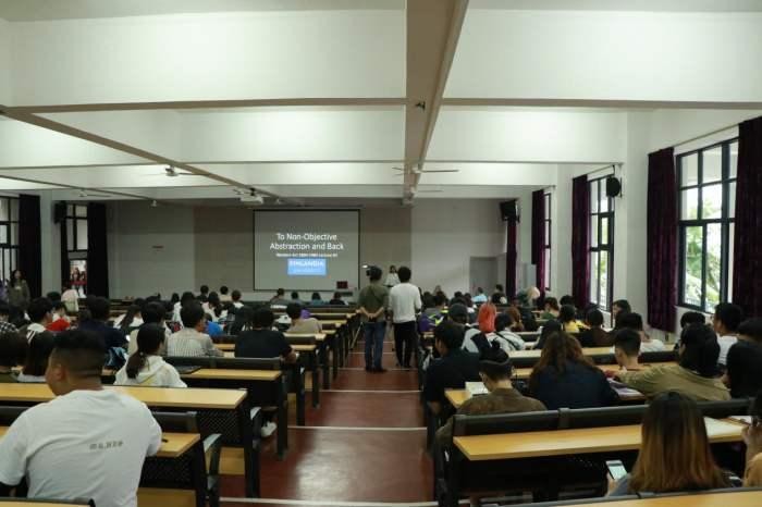 讲座尾声,丹尼斯教授表示下一讲将会有关于毕加索等画家。这部分讲座在全场师生的热烈掌声中圆满结束,下一讲的内容请同学们敬请期待。 (陈建江 摄)