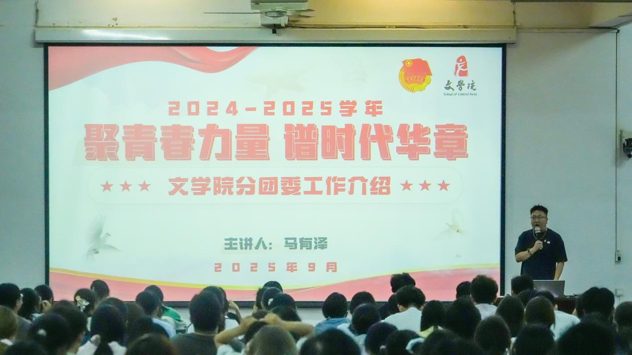 为帮助文学院2025级新生深入了解中国共产主义青年团的性质、使命、光荣历史以及团员的权利义务,引导青年树立理想信念、践行青春担当,文学院分团委于9月10日在伦理楼107室召开了入团教育暨工作介绍大会。会议由分团委书记马有泽主持。