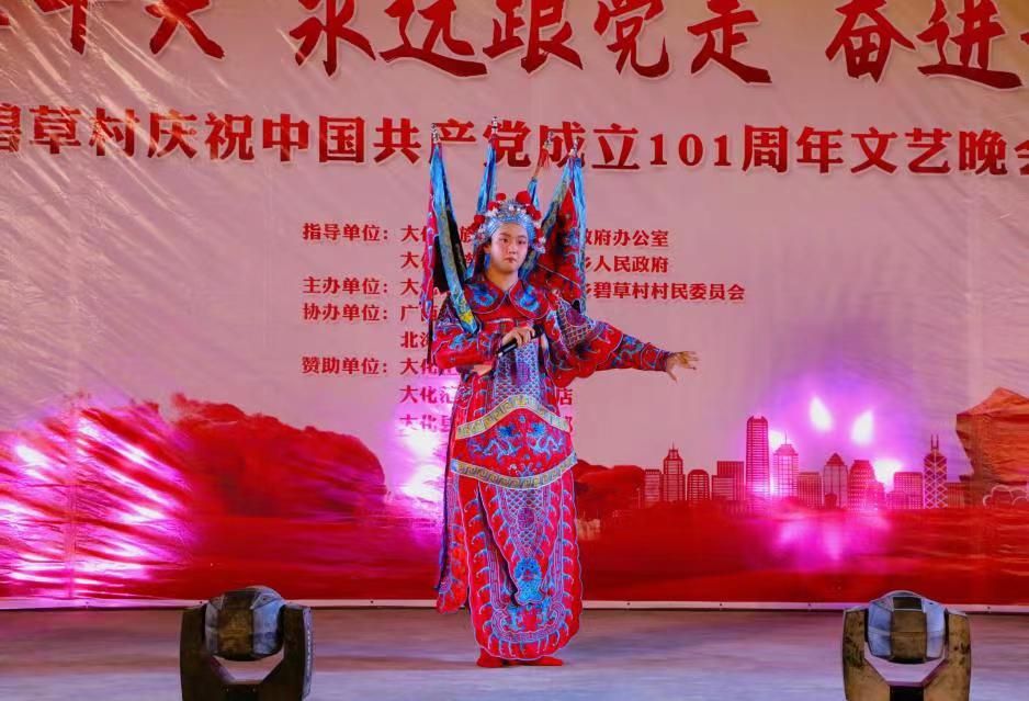 7月13日,人文教育学院师生与碧草村当地群众一道,共同开展庆祝中国共产党成立101周年文艺晚会。