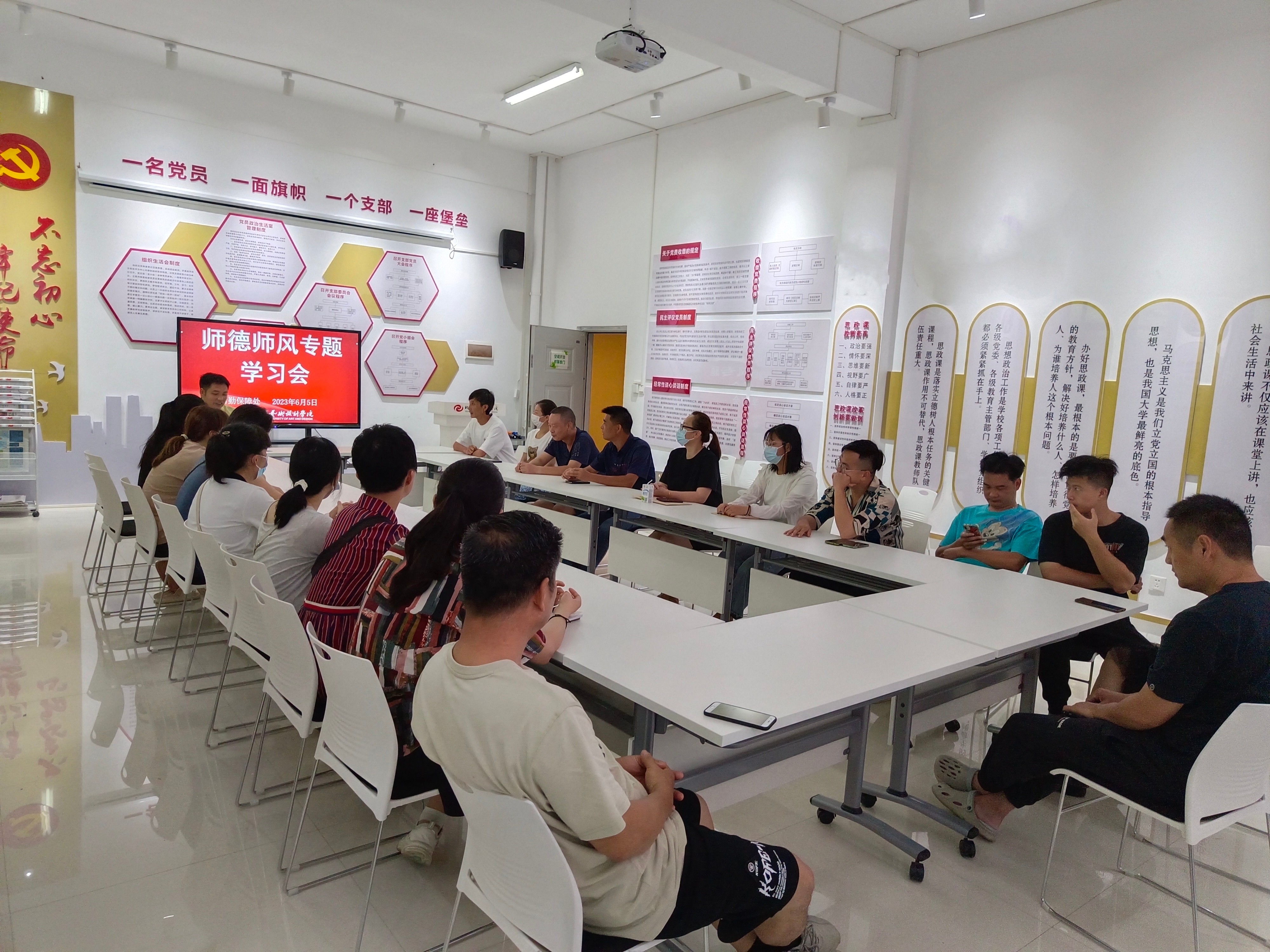 为进一步加强师德师风建设,提高职业道德素养,后勤保障处于2023年6月5日在行政楼103召开师德师风专题学习会。会议要求全体职工恪守规范,严守底线,自律自强,自觉践行良好师德,树立良好师风学风。(苏文超/摄)