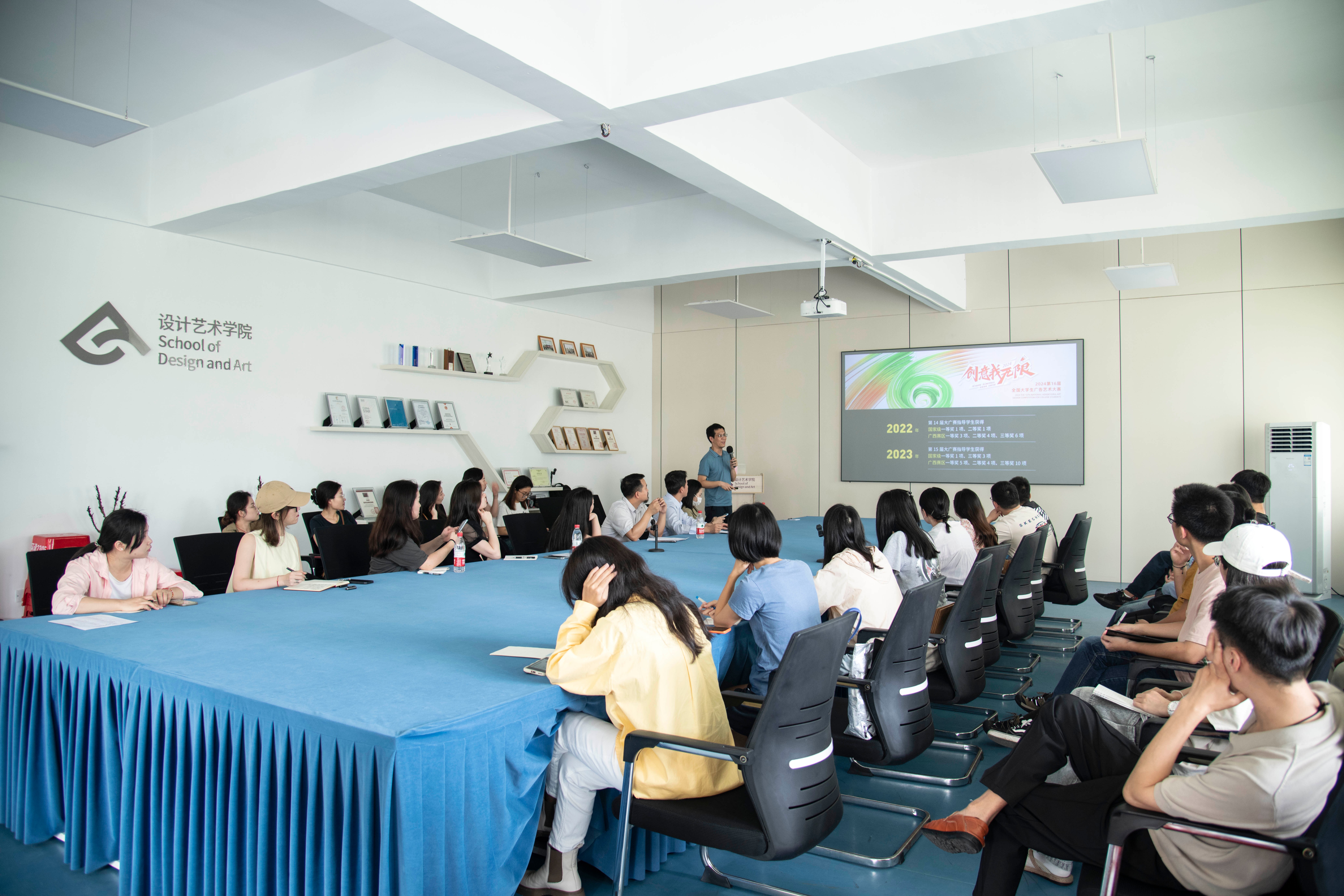 4月1日15:00,南宁学院视觉传达设计教研室主任邓海贝副教授为我院教师带来了一场主题为“创意有道·艺创融合”的培训,旨在提升中青年教师在“人工智能+广告创意”领域的教学能力。本次培训于设计艺术学院伦理楼408室开展,学院党总支书记黄锦、设计艺术学院院长李林平、副院长白建强、创新创业学院院长云曼以及广告设计与广告策划的任课教师、大创项目的指导教师等人共同参加了此次培训。