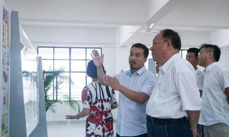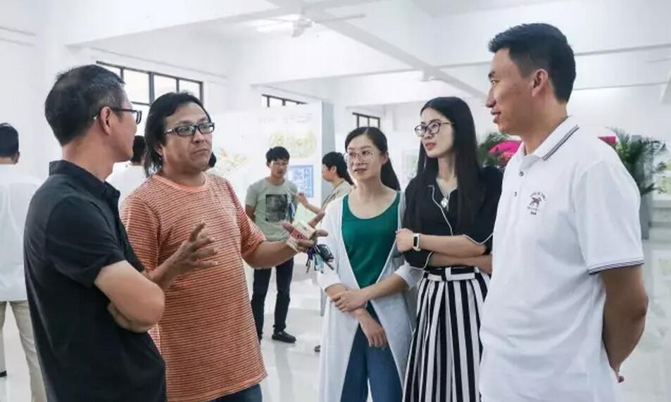 领导嘉宾在观看展览过程中也深入探讨了视觉传达专业的课程安排,对学生作品进行了评价和建议。