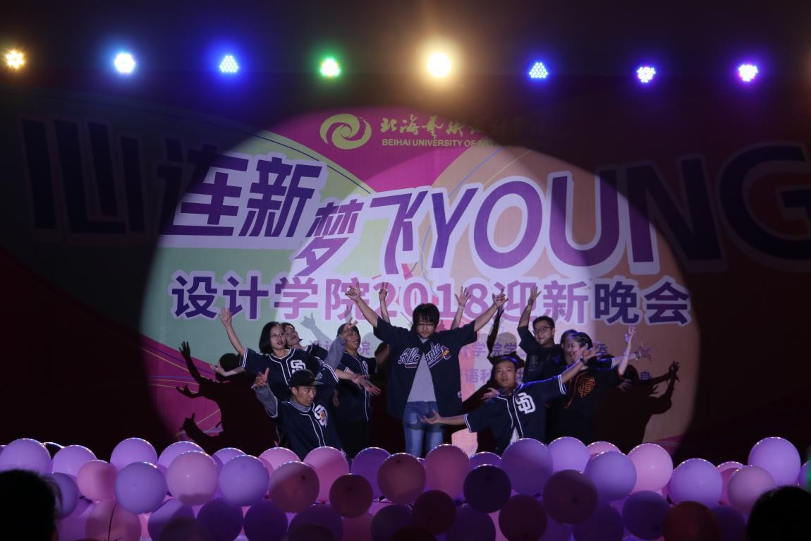 由18级班主任带来的舞蹈COME ON BABY,彻底点燃全场。他们是默默奉献的辛勤园丁,他们是孜孜不倦的教育者,但同时他们也是一群活力四射的青年,他们用激情四溢的舞蹈欢迎新同学的到来。晚会最后,在设计学院分团委合唱《明天你好》的歌声中,长达三个小时的充满激情和欢乐的晚会完美落幕。