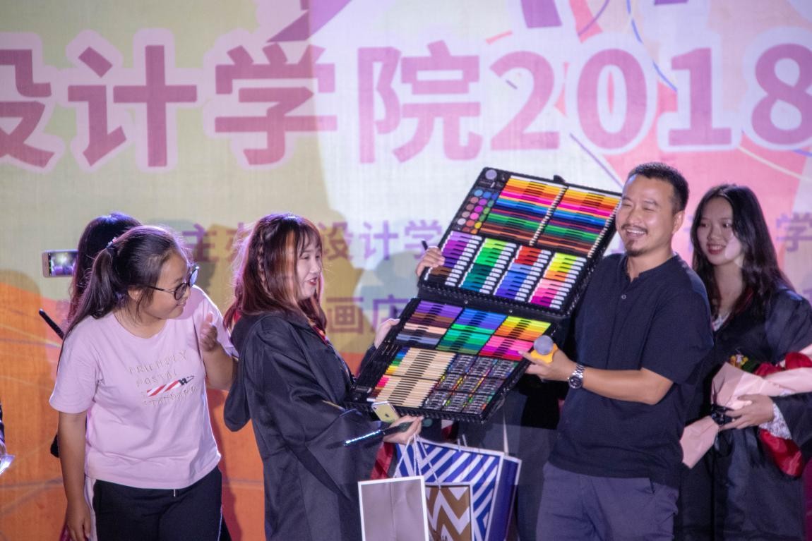 为让广大师生积极互动,晚会还加入了激动人心的抽奖环节。由设计学院常务副院长李林平、设计学院副院长庞定坤作为抽奖人,又引起一片欢呼。奖励丰厚,让中奖的幸运儿兴奋不已。