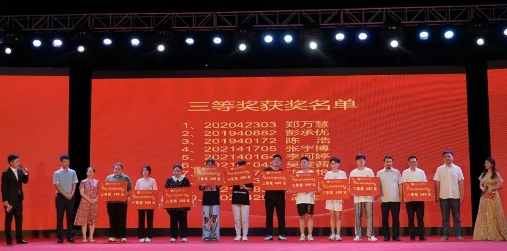 篇章二:韵歌芳华,砥砺前行 新青年要勇做革命的先驱,新青年要锐意创新勇开先河,新青年更要用辛勤的汗水铸造辉煌!让我们砥砺前行不负青春! 第二轮抽奖环节抽取二等奖1000元共十名,担任本次抽奖的领导嘉宾有郑念贻董事长、彭仁副校长和陶立阳副校长,恭喜获得二等奖的幸运儿们! 篇章三:艺梦逐路,灯火星传 舞蹈《青春不落幕》 每个人的青春都只是一段岁月,但一代又一代的青春连接起来,那就是灿烂的星河,总之我们的青春永远都不会落幕,将持续盛开。让我们接过时代的火把,使这把火也随着一代又一代艺术人才的涌现愈燃愈烈。 第三轮抽奖环节抽取一等奖5000元共两名,担任本次抽奖的领导嘉宾是校长卢新华,恭喜获得一等奖的幸运儿们! 篇章四:青春起航,季亿留夏 青春是站在山巅与日月星辰对话,是潜游海底和江河湖海畅谈,在这个盛夏,让我们扬起青春的风帆,与热爱并肩奔跑,将回忆保留珍藏。 第四轮抽奖环节抽取奋进奖10000元共一名,担任本次抽奖的领导嘉宾是学校党委书记张阳,恭喜获得奋进奖的幸运儿! 记忆的长河,历历在目,挥洒的青春紧跟新时代的脚步,伴着一个又一个精彩的节目,欢送晚会也拉下帷幕。相聚的时光总是快乐而短暂,让我们恋恋不舍。无论天南海北,不论相聚离别,让我们铭记此时此刻的快乐并真心祝愿大三的学姐学长们,前程似锦,扬帆起航!(何佳惠、王星雨/摄)