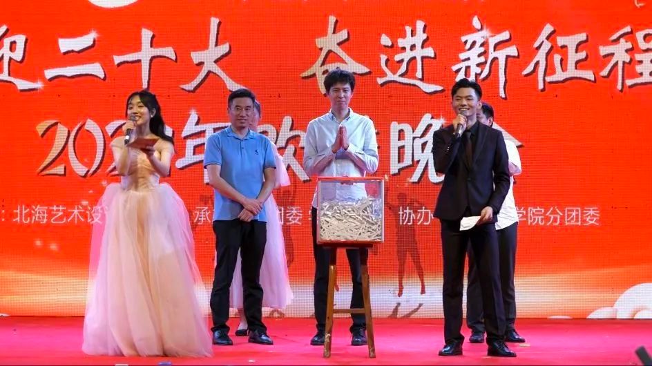 习近平总书记寄语我们:新时代的中国青年,生逢其时,重任在肩,施展才干的舞台无比广阔,实现梦想的前景无比光明。“少年雄于地球,则国雄于地球。”不应只是一句口号,更应该是作为民族希望的我们去承担的责任,希望我们青年一代能不忘初心,共同肩负起时代重任!第一轮抽奖环节抽取三等奖500元共十名,担任本次抽奖的领导嘉宾是建筑与环境艺术学院王照伟院长、设计艺术学院李林平院长、动画与传媒学院庞定坤院长、人文教育学院熊秀峰院长以及美术学院党总支书记,恭喜获得三等奖的幸运儿们!