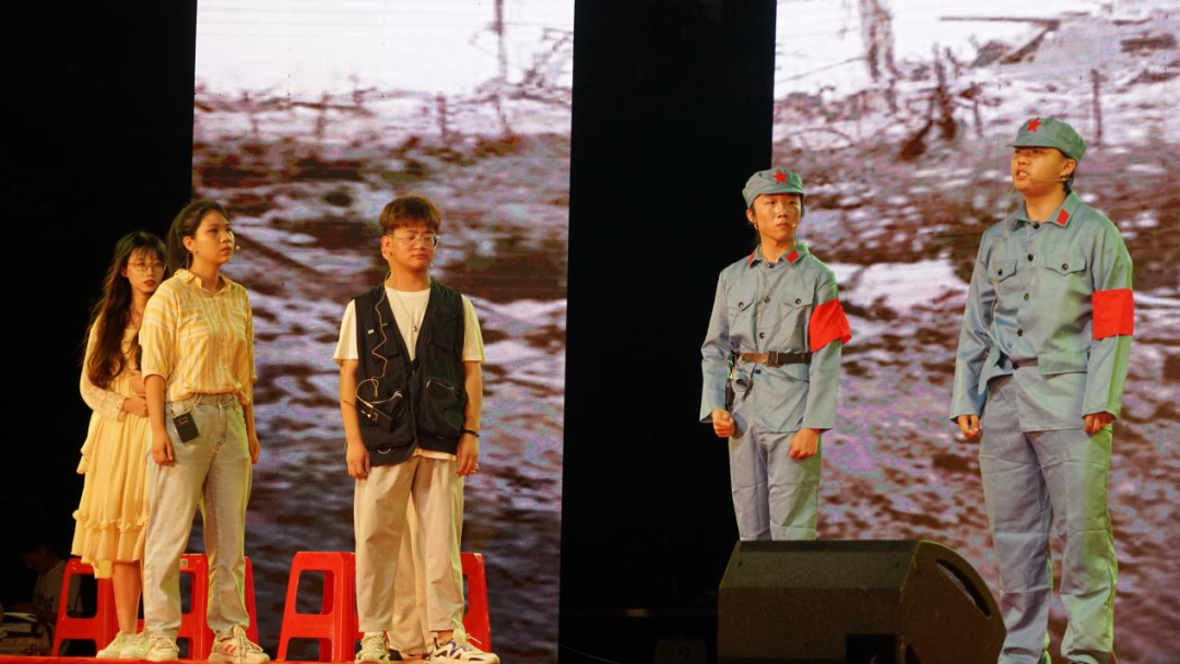 不忘初心、牢记使命是为中华人民谋幸福,为中华民族谋复兴。呼吁永远把人民对美好生活的向往作为奋斗目标,以永不懈怠的精神状态和一往无前的奋斗姿态,继续朝着实现中华民族伟大复兴的宏伟目标前进。由舞表1902班项铭会、蔡艺文等同学表演的《八女投江》,用柔美的舞姿展现了东北抗日联军8名女战士,在抗击日本侵略军的战斗中弹尽援绝,为国捐躯的英雄气概。