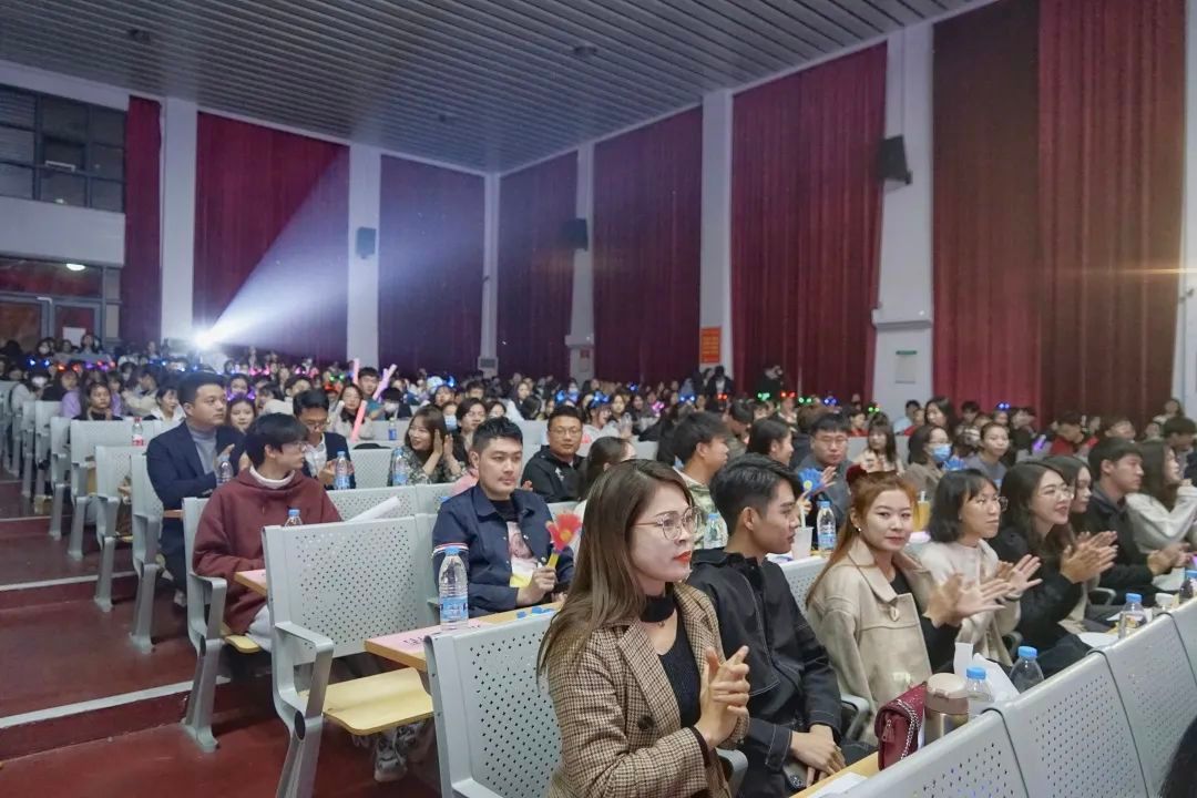 激扬旋律中,歌声与欢乐融合,观众们自发营造出一片星海,荧光棒形成的滚滚星河中,是我们对歌手们的支持,对悦耳歌声的喜爱。特别环节中,各位评委老师和同学通过授予锦带向自己喜爱的歌手送上一份祝福。
