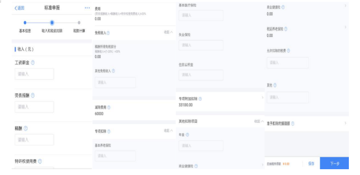 除专项附加扣除信息、商业健康险、税收递延养老保险、 准予扣除的捐赠额、减免税额外,可直接填写申报表各项数据。