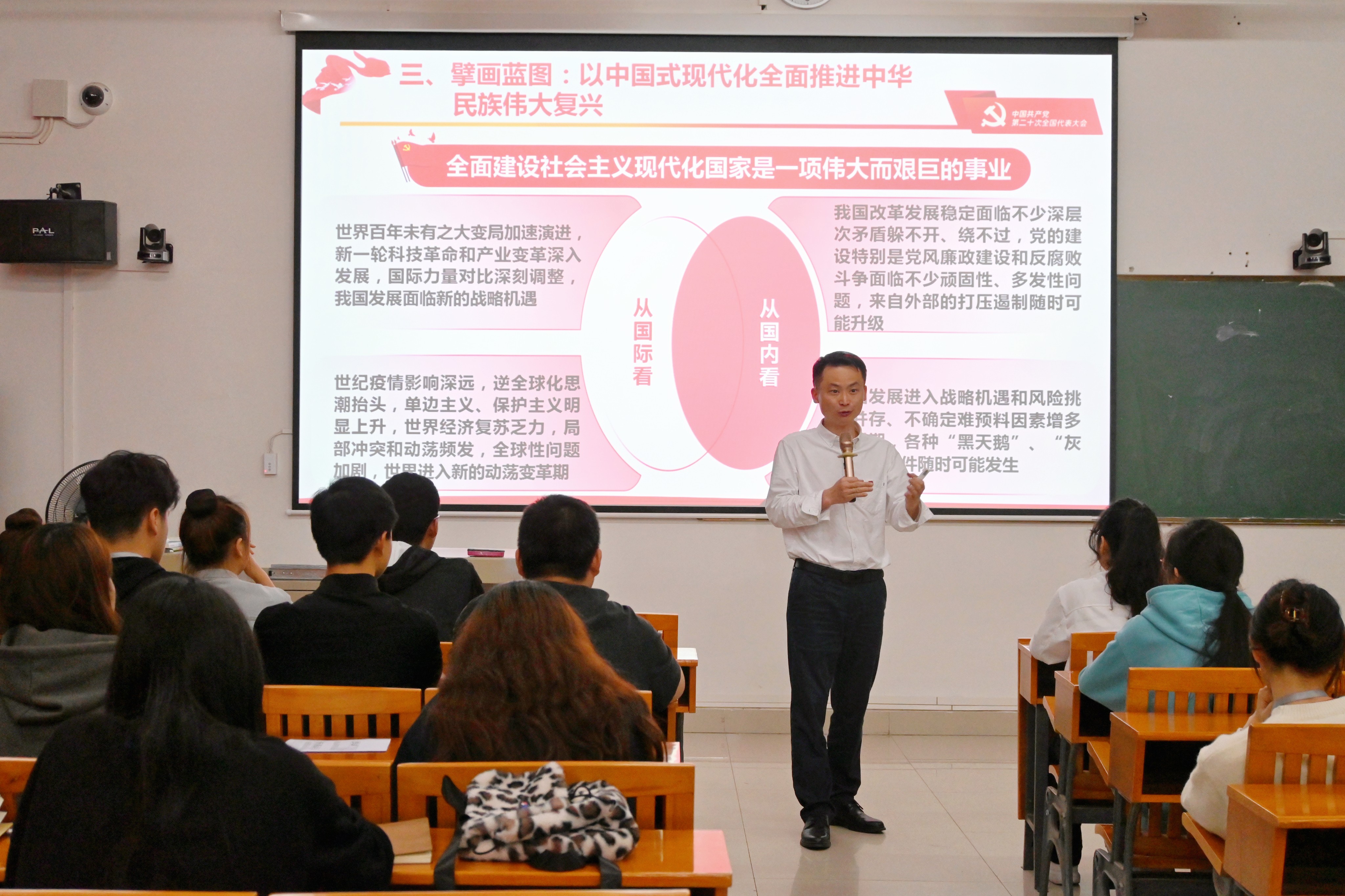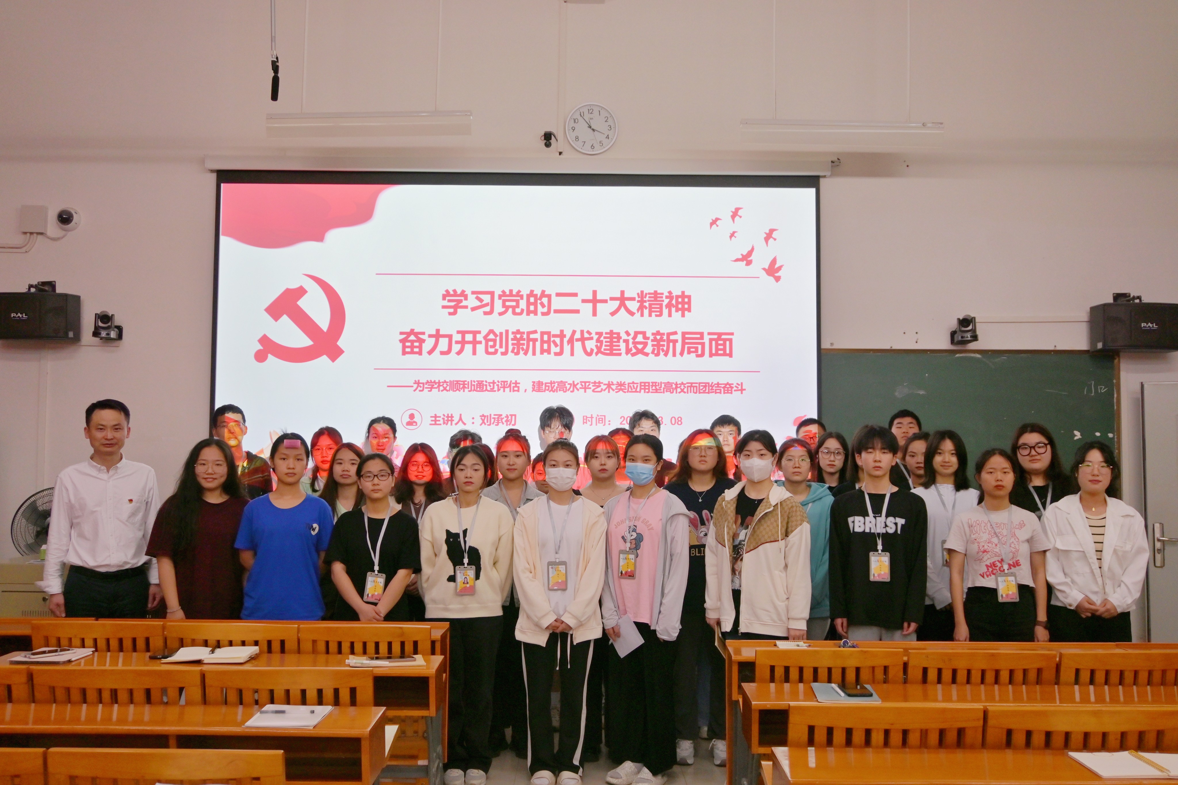 为深入学习贯彻党的二十大精神,切实推动党的二十大精神进课堂进教材进头脑,根据学校党委统一部署,3月8日晚19时30分,在公德楼112教室,学校党委委员刘承初为人文教育学院分团委的学生干部带来了一场题为《学习党的二十大精神,奋力开创新时代建设新局面》的宣讲会。