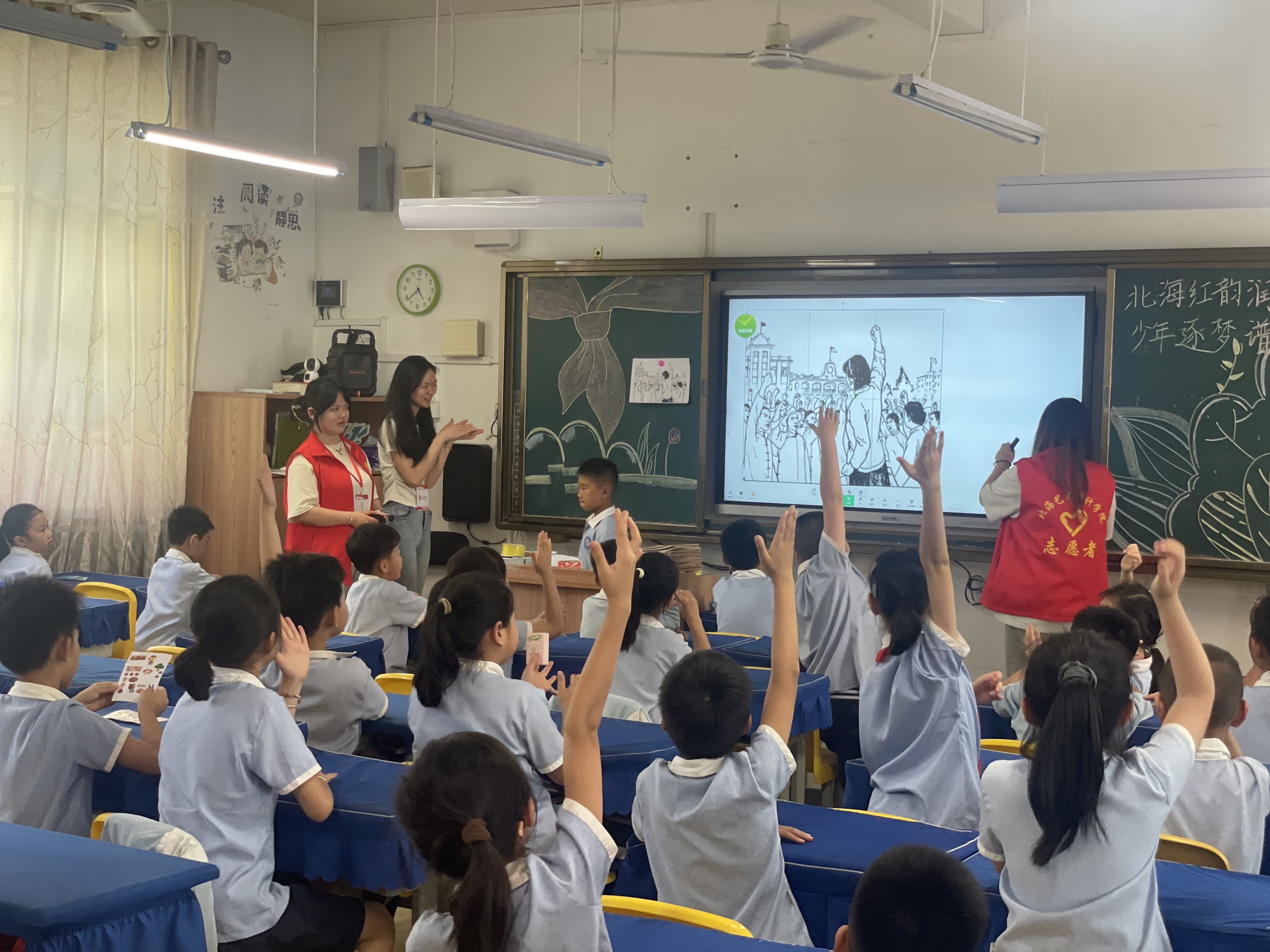 此次活动不仅为小学生播撒了红色种子,也为文学院学子提供了实践平台,用青春视角创新红色教育形式,实现了双向赋能共成长。学生们纷纷表示,通过这次主题班会,自己对北海的红色历史有了更深入的了解,在准备和讲述的过程中,也更加深刻地体会到了革命精神的内涵和价值。今后,学院将计划继续开展系列主题活动,推动红色教育走深走实,让革命精神在新时代绽放光芒。(马有泽/摄)