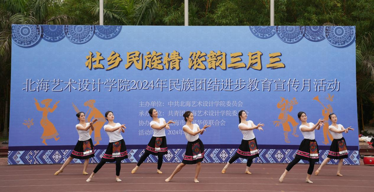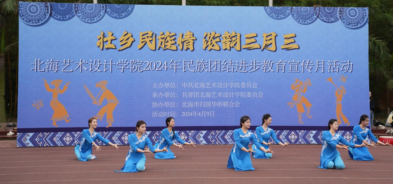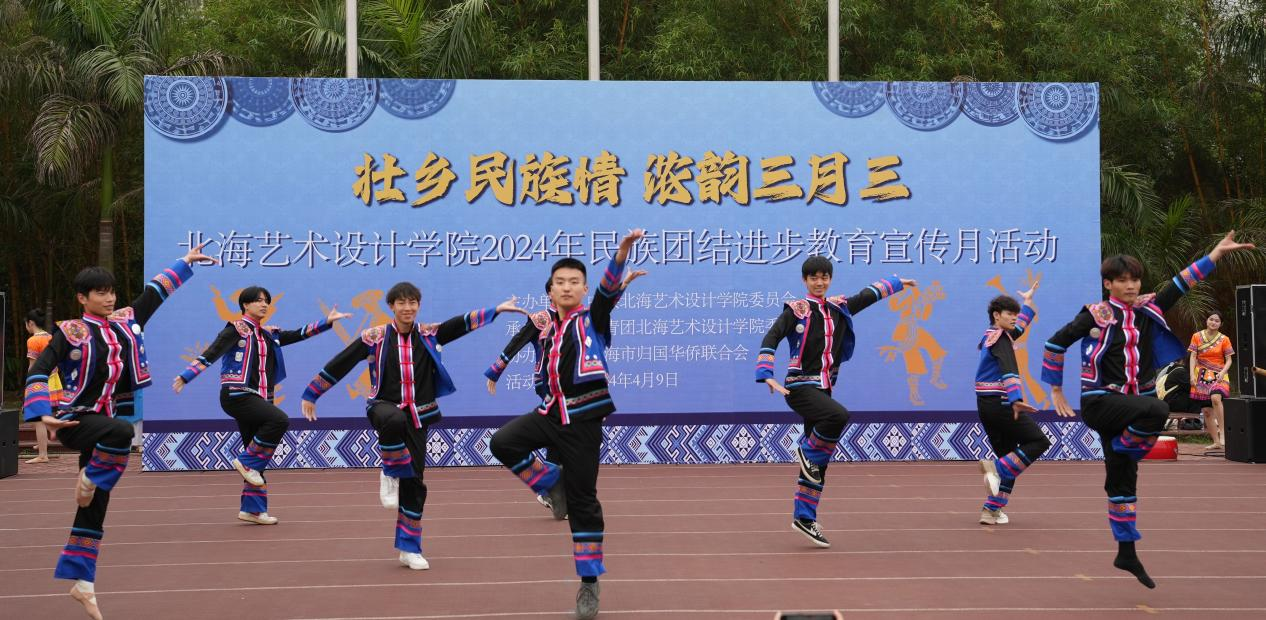 4月9日,学校党委联合学校团委、北海市归国华侨联合会在西区操场开展以“壮乡民族情 ,浓韵三月三”为主题2024年民族团结进步教育宣传月活动。